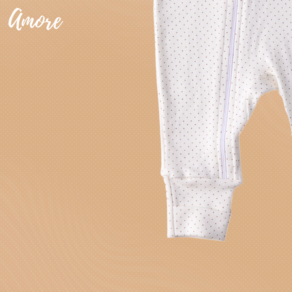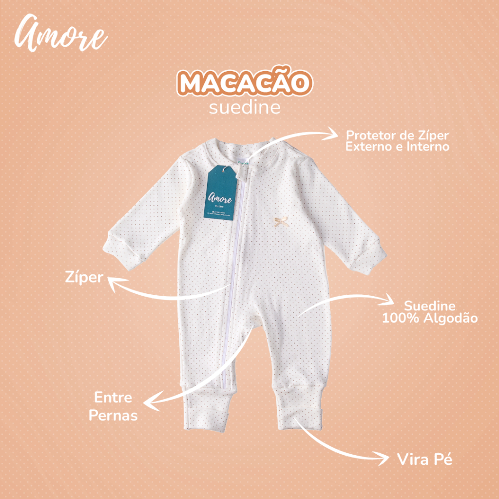 Macacão de Bebê Amore Vira Pé Bolinha Com Zíper 100% Algodão