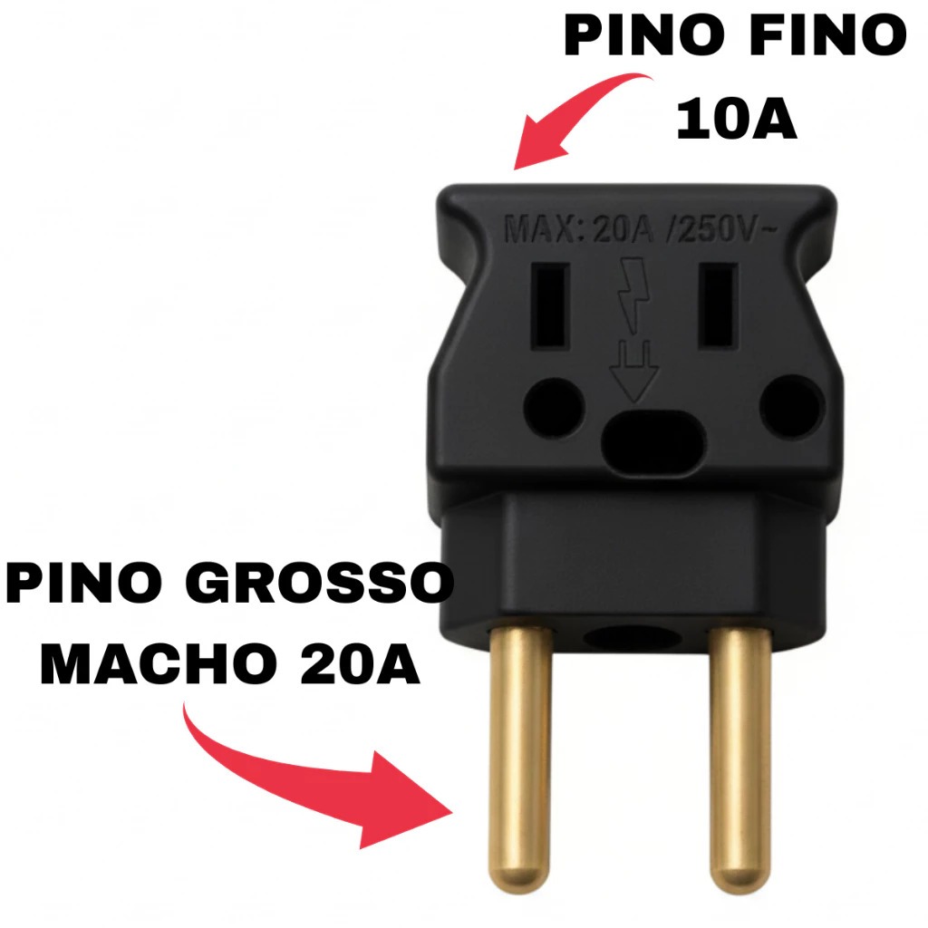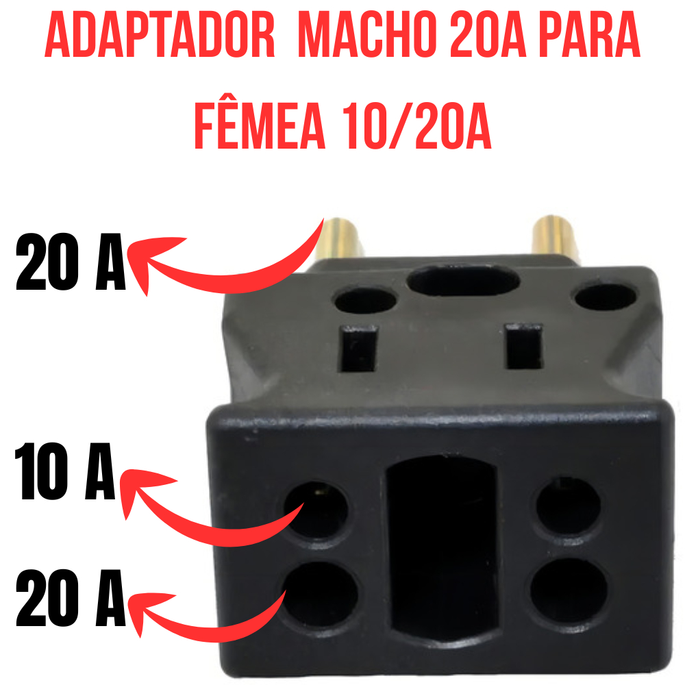 Adaptador Elétrico Macho 20A para Fêmea 10/20A – Reforçado 250V