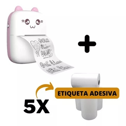 Mini Impressora Térmica Portátil + 5 Rolos Adesivos