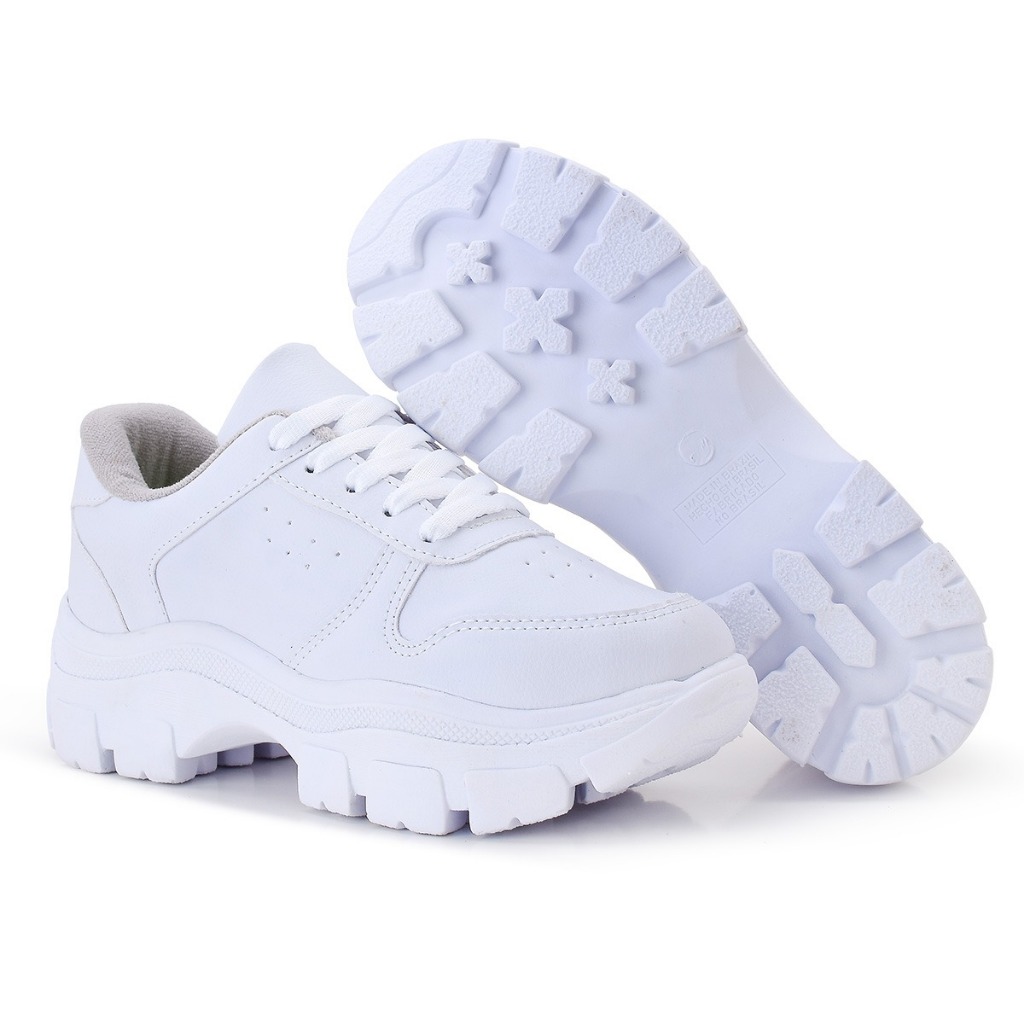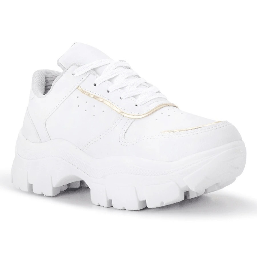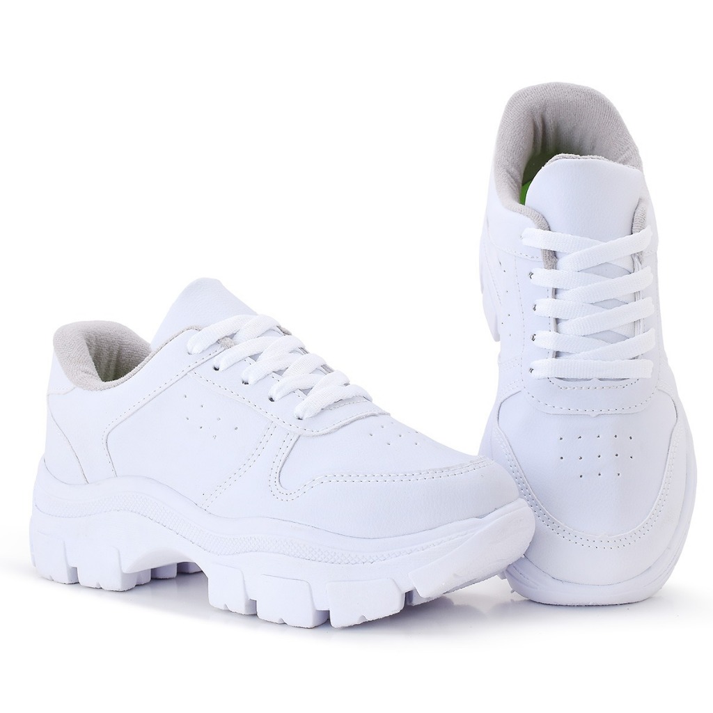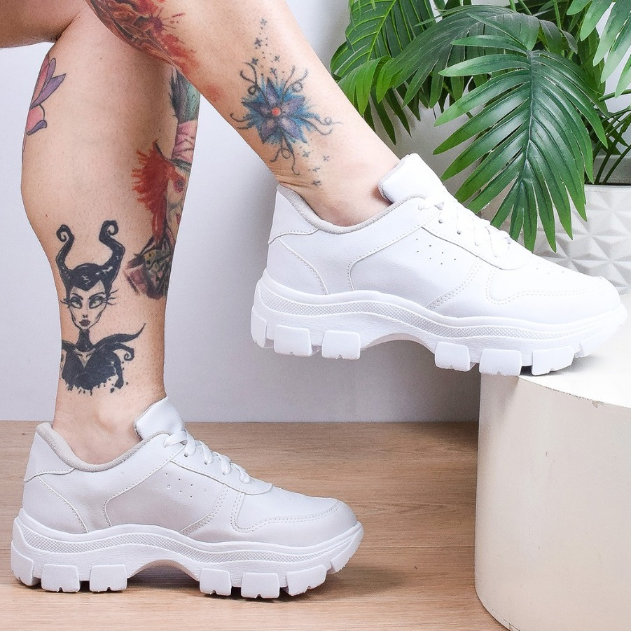 Tenis Feminino Branco Sola Alta Plataforma Tratorada 6cm Confortavel Chunck Búfalo Estilo Chuck Dad