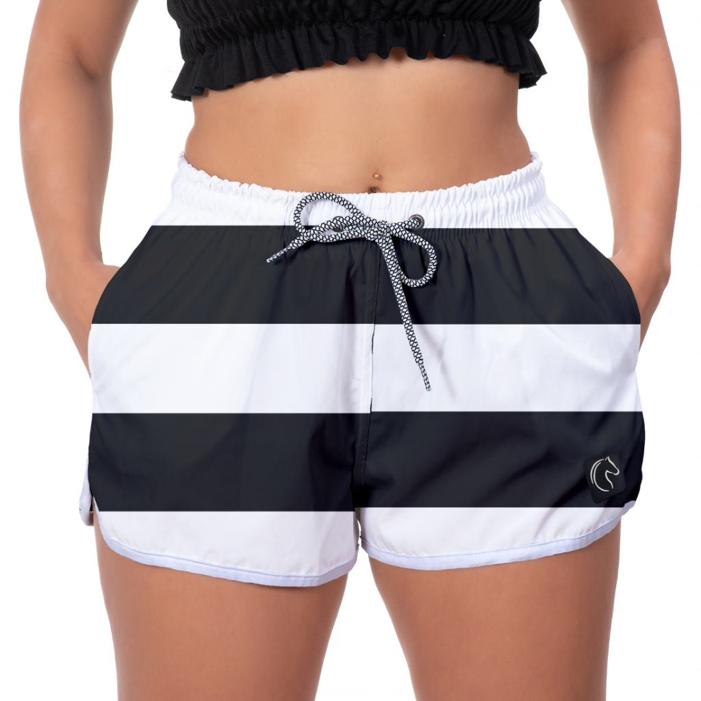 Short Feminino Moda Praia Premium Estilo Casual Com Bolsos e Secagem Rápida Branco,Azul e Vermelho