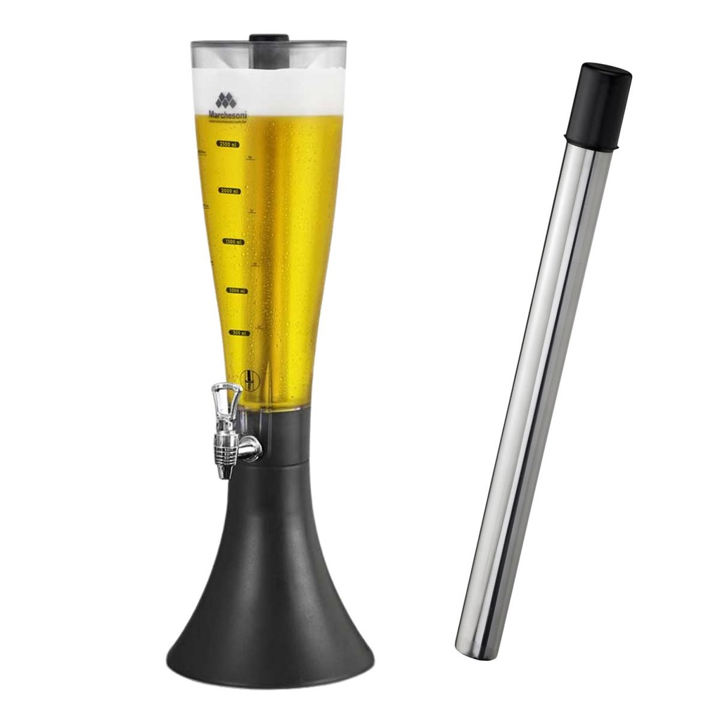 Kit Torre De Chopp 3,5 Litros Marchesoni Choppeira Com Refil E Torneira Prata Extra