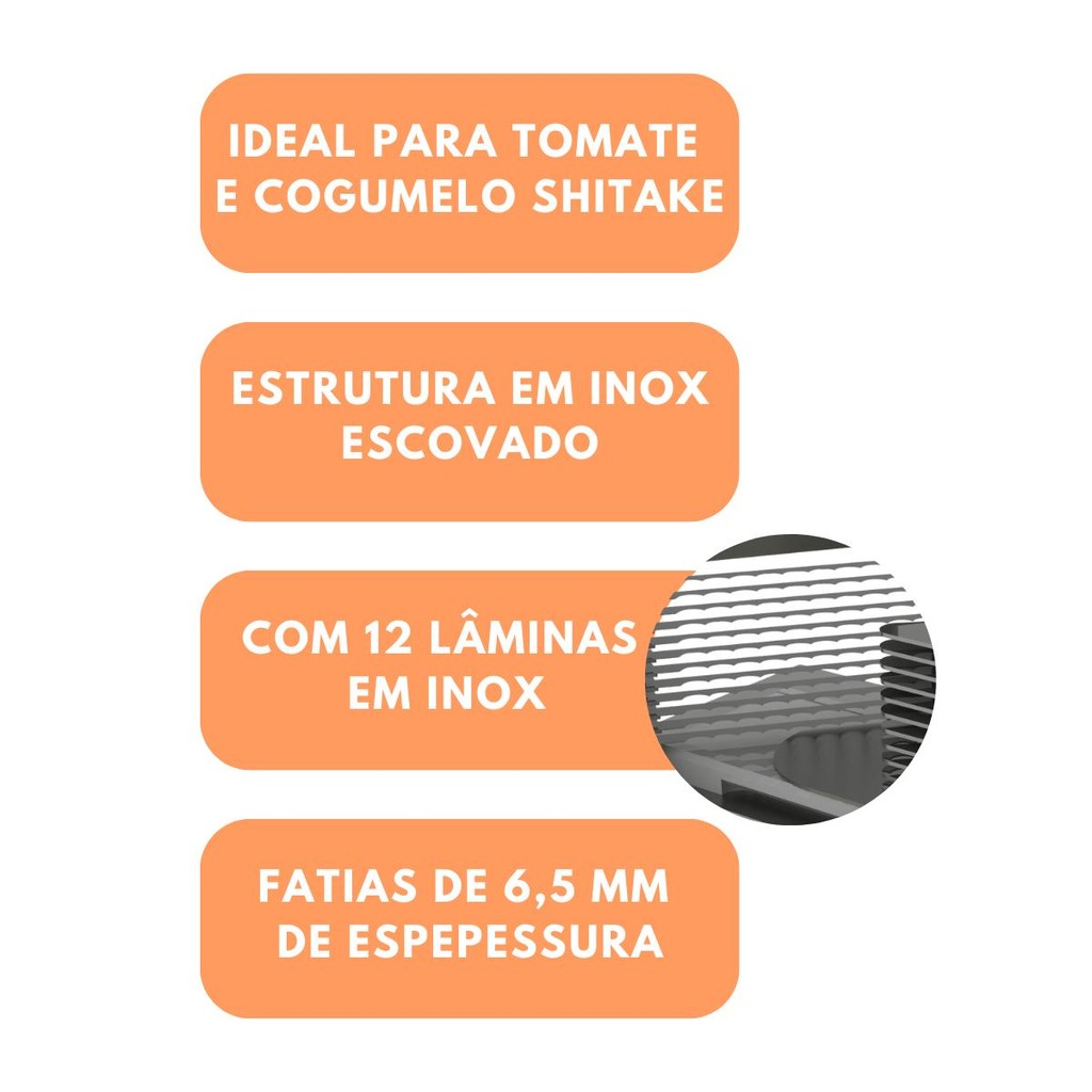 Fatiador De Tomates E Legumes Manual FLB180 Cortador 12 Lâminas 6,5mm Profissional Braesi