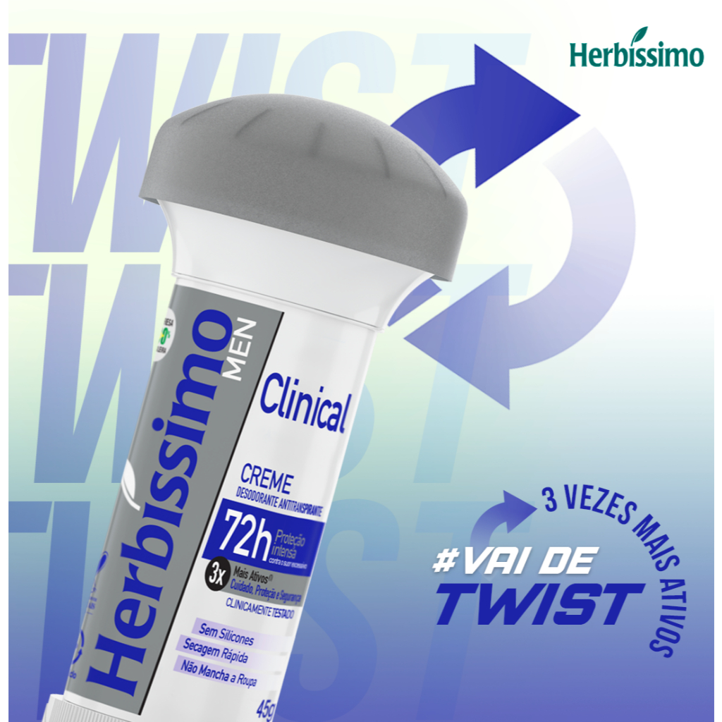 Kit 3 unid - Desodorante Twist Antitranspirante Herbíssimo Clinical Men 45G