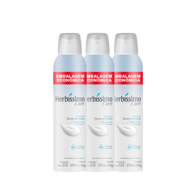 Kit Desodorante Aerossol Antitranspirante Herbissimo Care Sensitive 250ml Embalagem Econômica (3 unidades)
