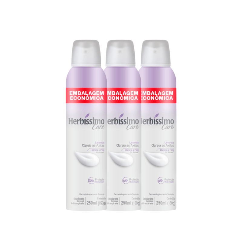Kit Desodorante Aerossol Antitranspirante Herbíssimo Care Lavanda 250ML - 3 unidades