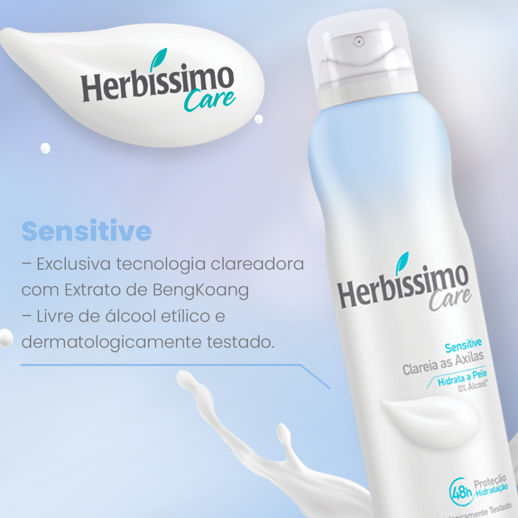 Kit 2 unid - Desodorante Aerossol Antitranspirante Herbíssimo Care Sensitive 150ml