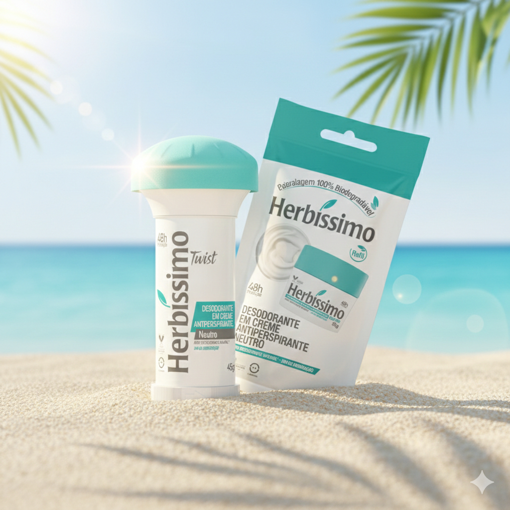 Kit 2 itens - Desodorante Creme Antitranspirante Herbíssimo Twist + Sachê Refil Neutro 45G