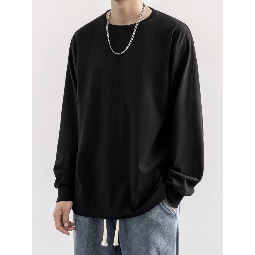 Camiseta Lisa Básica Manga Longa 100% Algodão Mlaha Premium Masculina Fio 30,1 Panteada Premium Gola Redonda