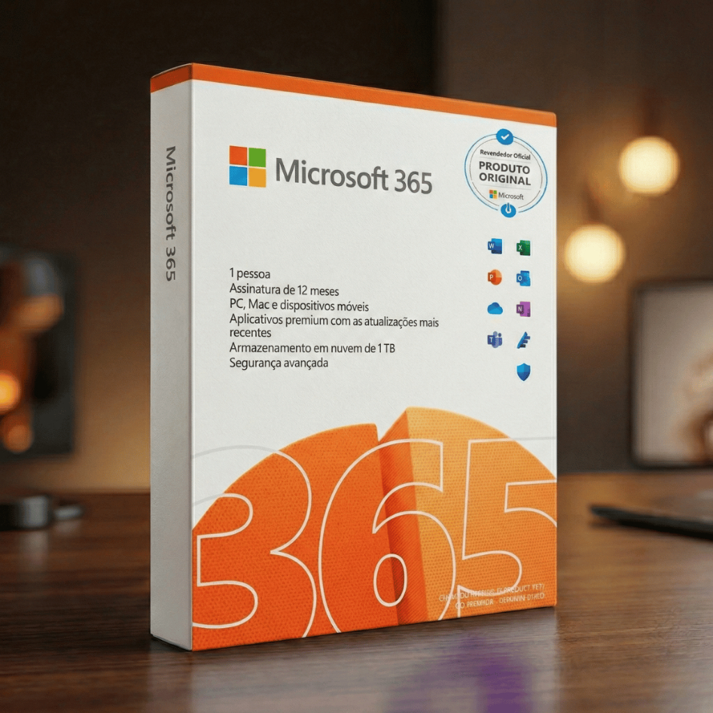 Microsoft Office 365 Mídia Física Licença 12 Meses + 1TB OneDrive 1 Usuário Assinatura Anual Físico