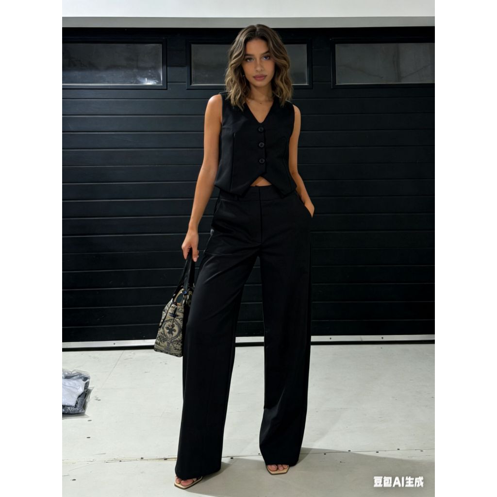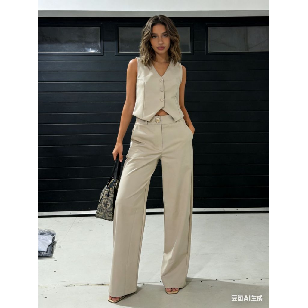 Conjunto Femenino Pantalona Social e Colete Com Botoes Maravillosos Moda Elegante e Confortavel Luis twil