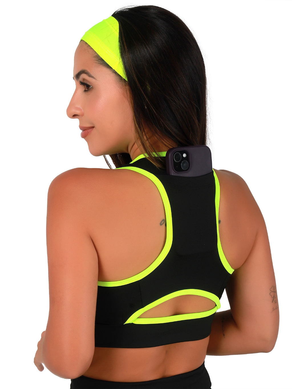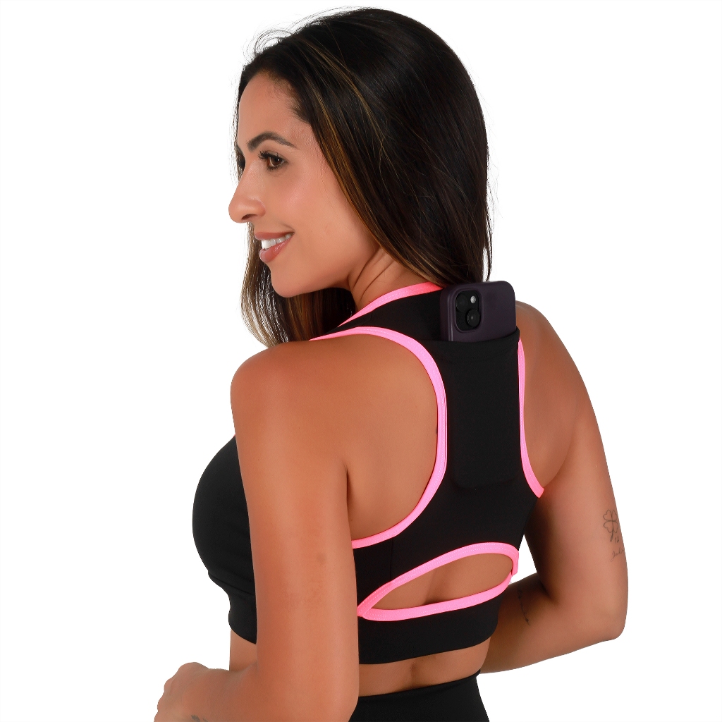 Top Feminino Fitness De Academia e Corrida Com Bolso Porta Celular