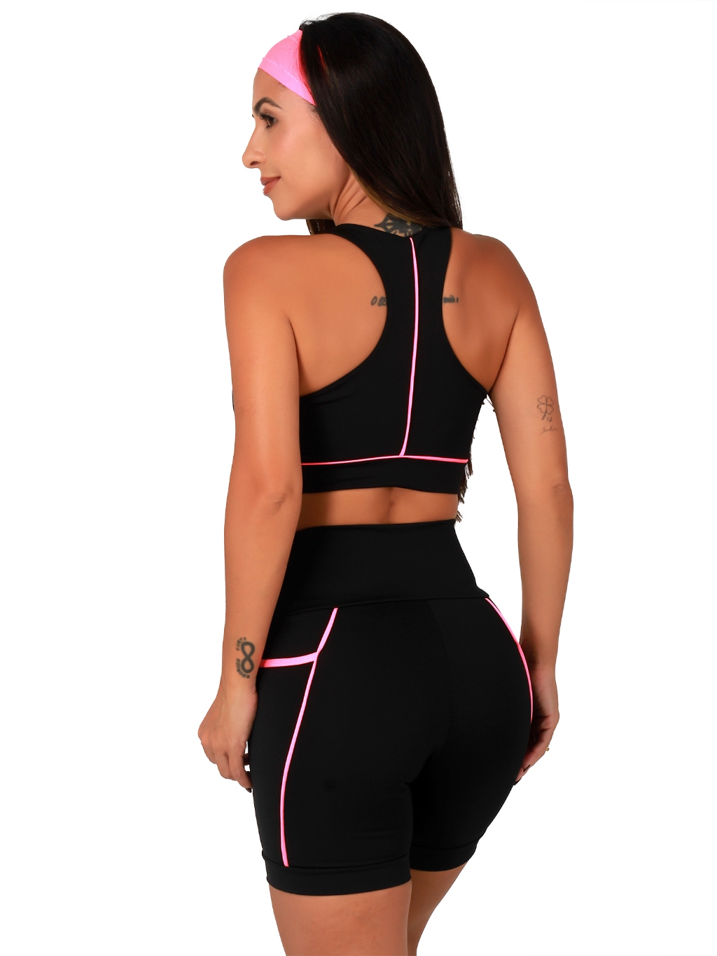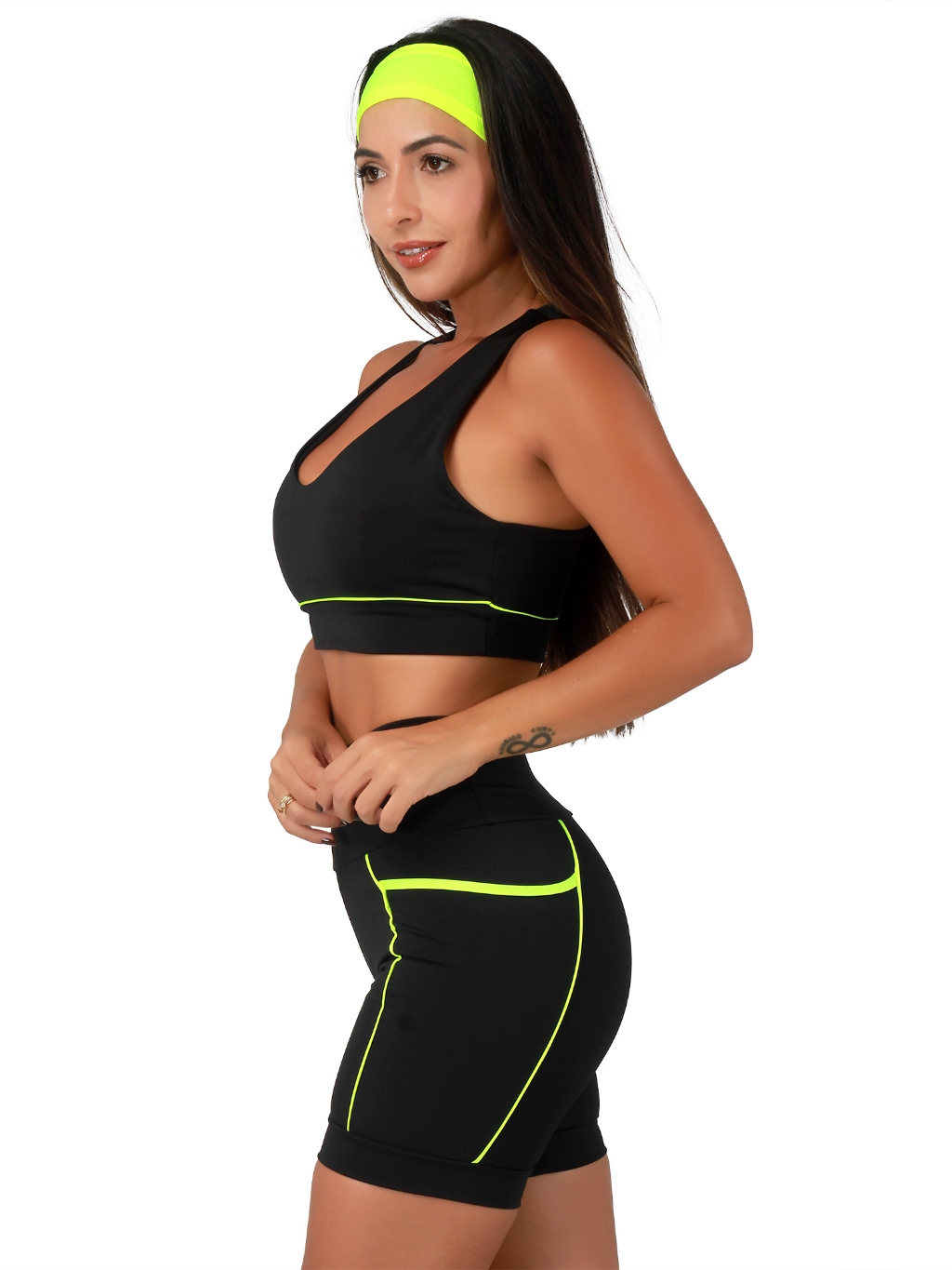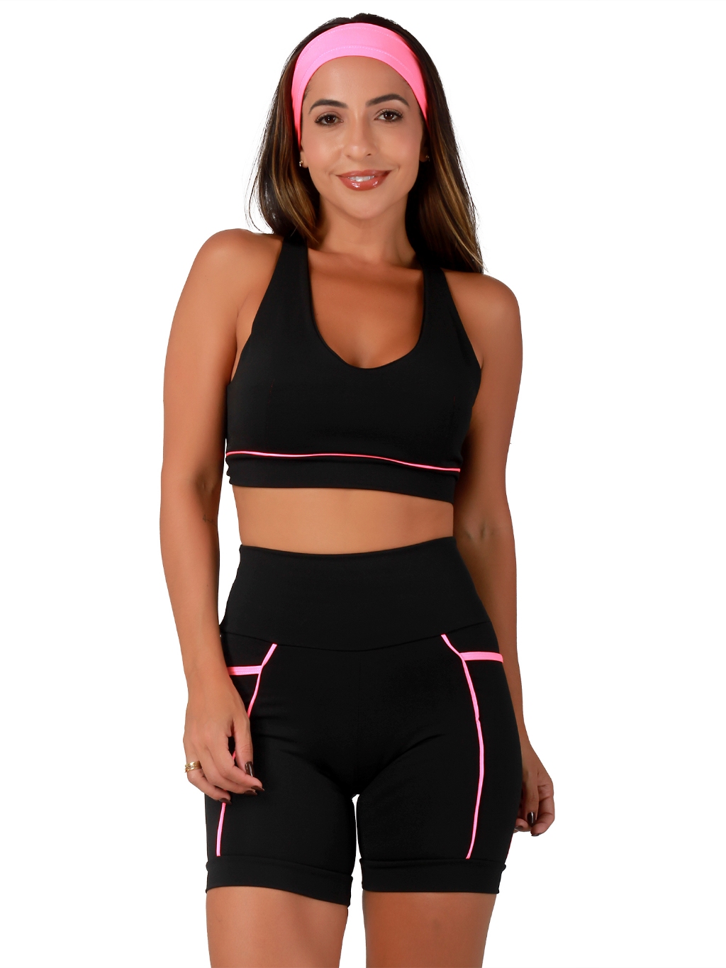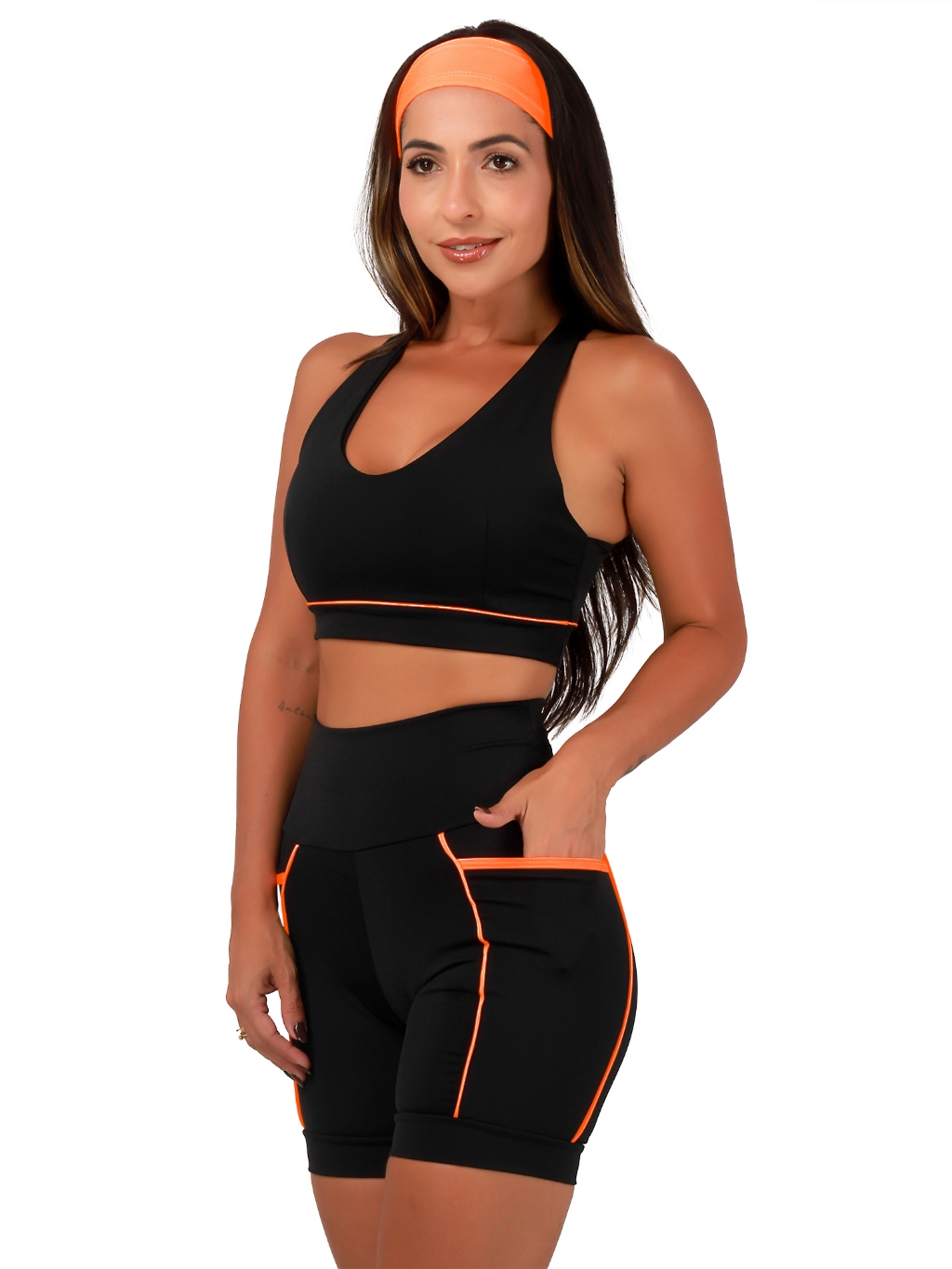 Kit 3 Conjuntos Fitness Feminino Top Academia + Bermuda Compressão Com Bolsos Laterais