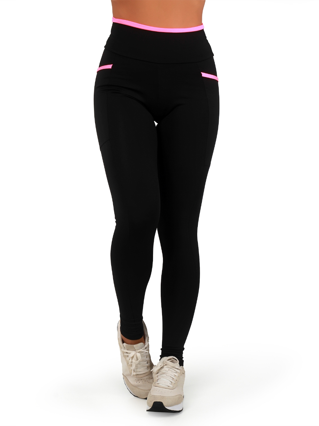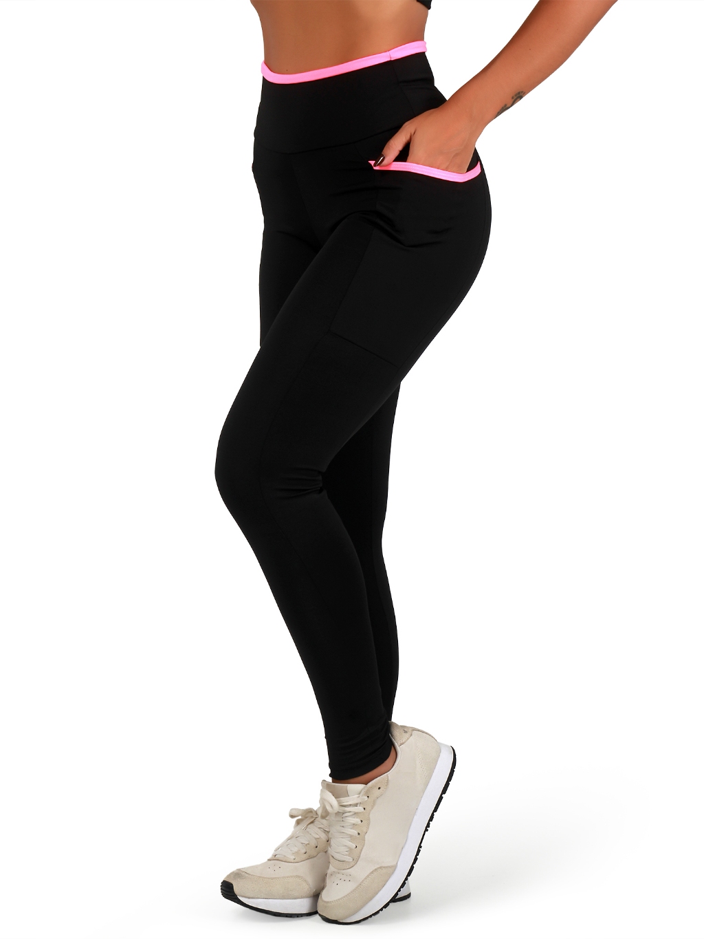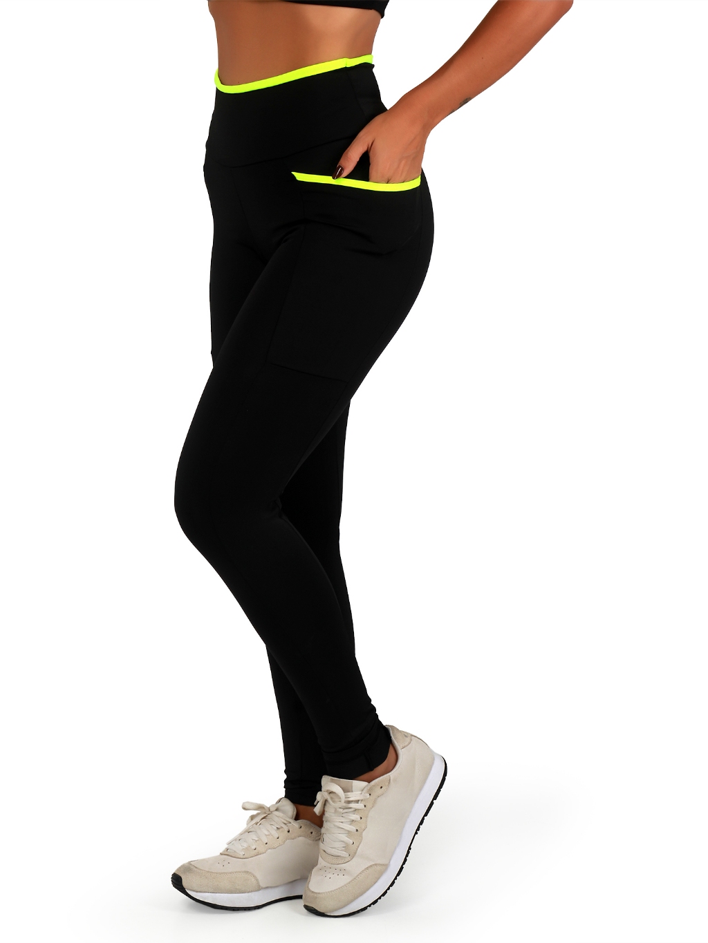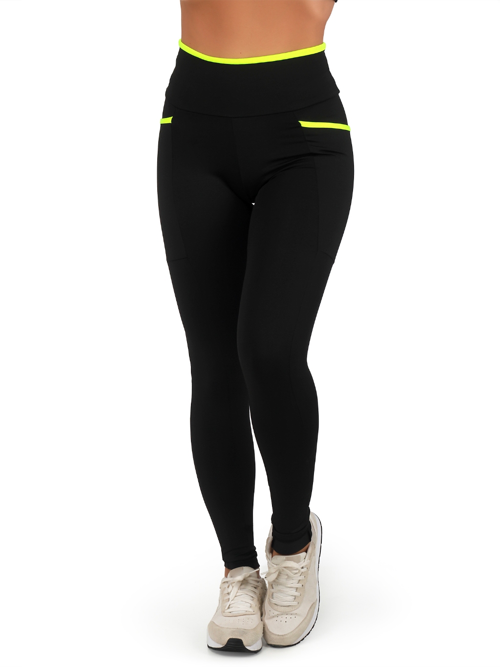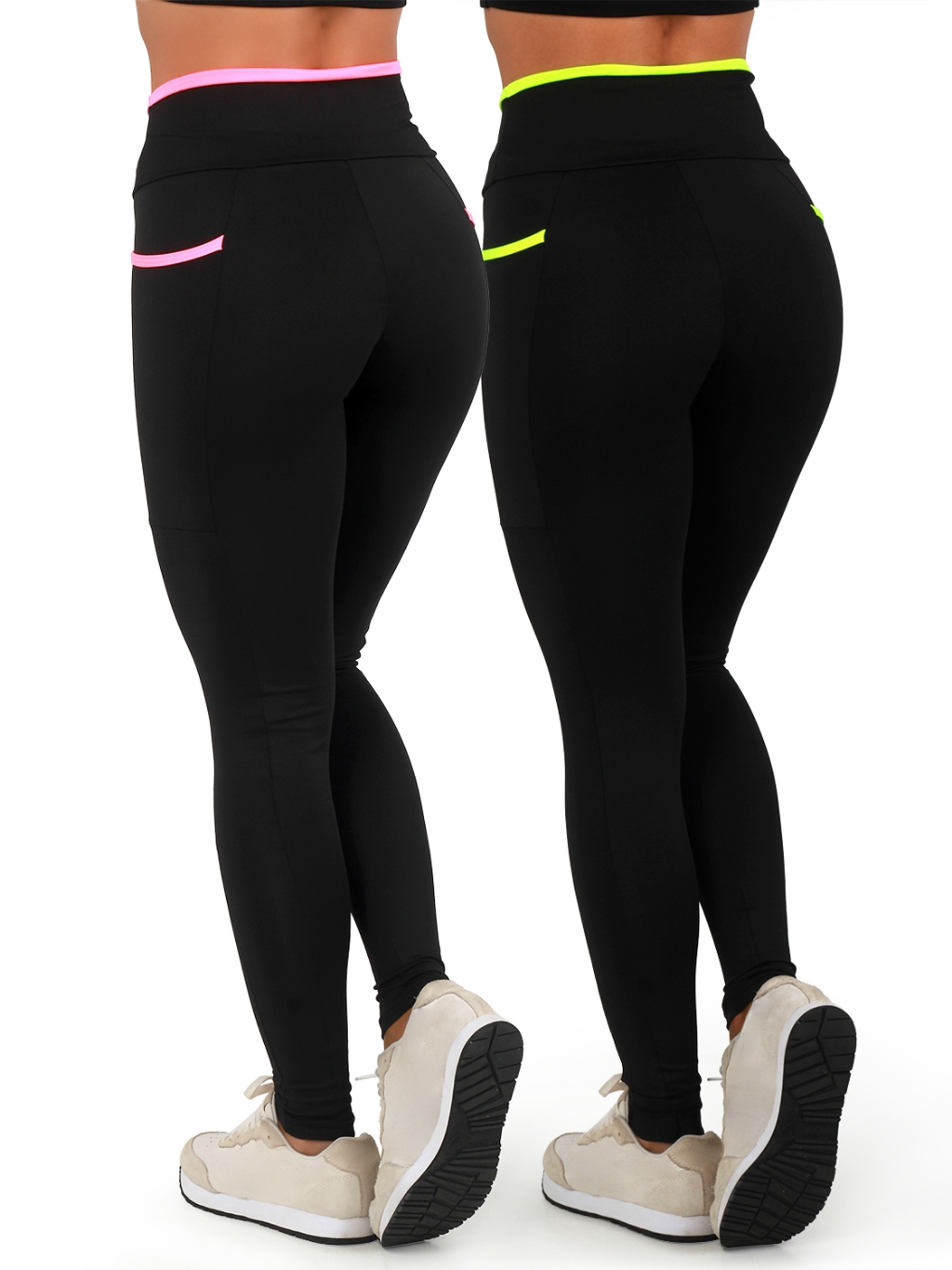 Kit 2 Calças Legging Fitness Feminina Academia Cós Alto Com Bolsos Laterais