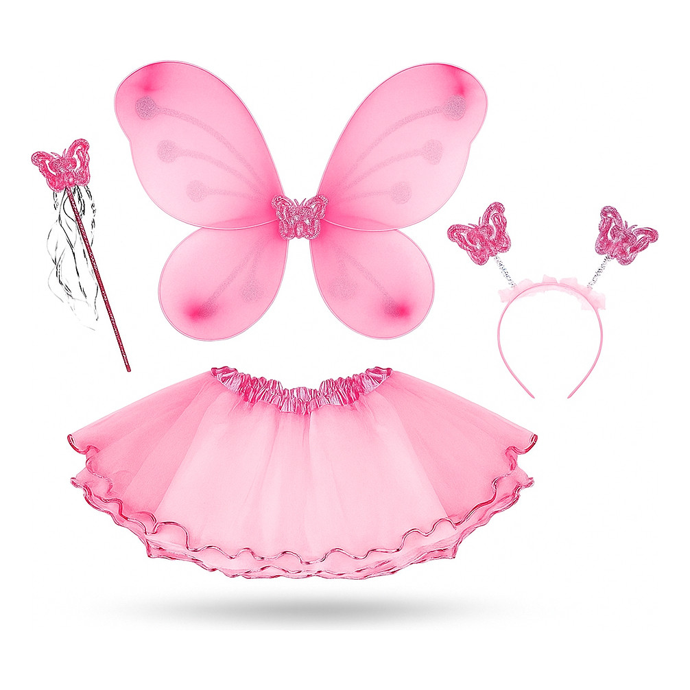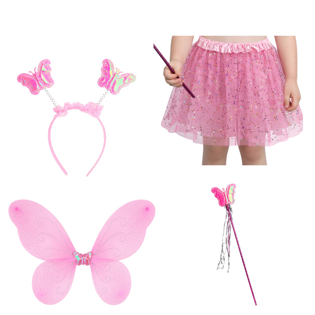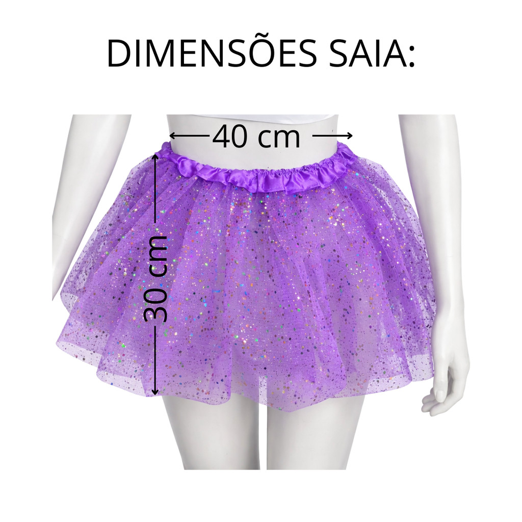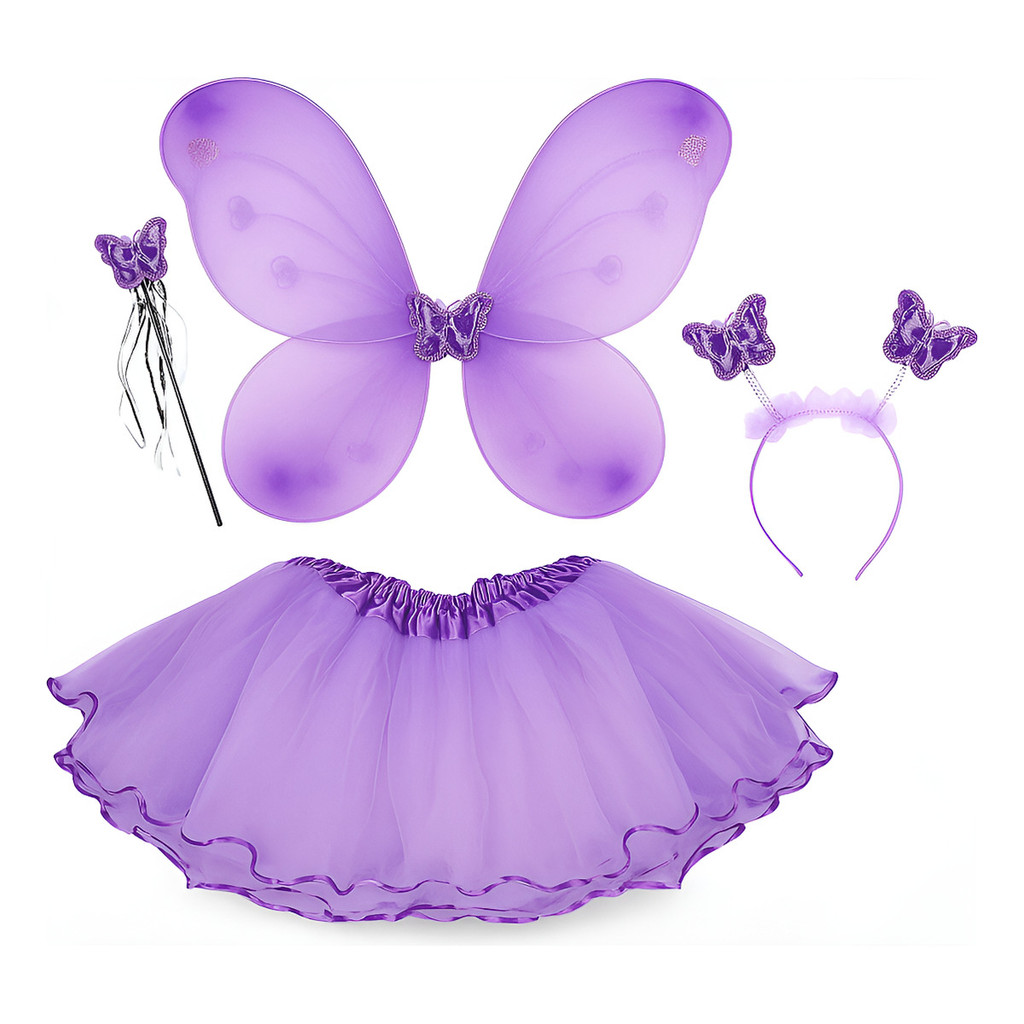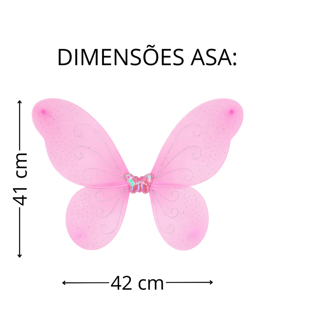 Kit Fantasia Borboleta Fada Infantil com Asa, Saia de Tule, Varinha e Tiara para Festa