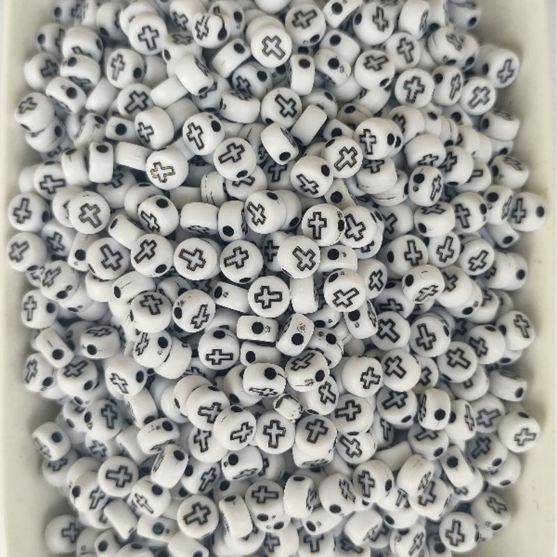 Miçanga Redonda c/Cruz - 7*4mm - 200 e 500 Pçs