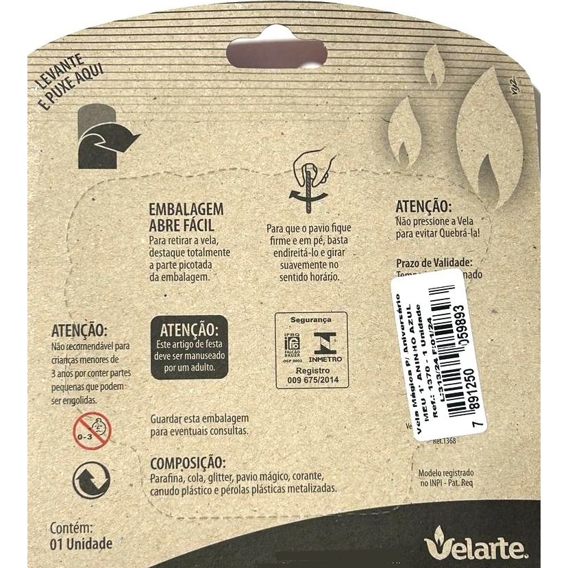 Vela Especial MEU PRIMEIRO ANINHO para Festa e Bolo de Aniversário - Cor Azul com Branco - Ref: 1370