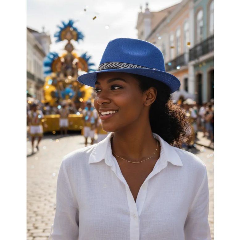 Chapéu Estilo Panamá Malandro cor AZUL para Sambista Samba Carnaval Fantasia Praia Piscina e Balada