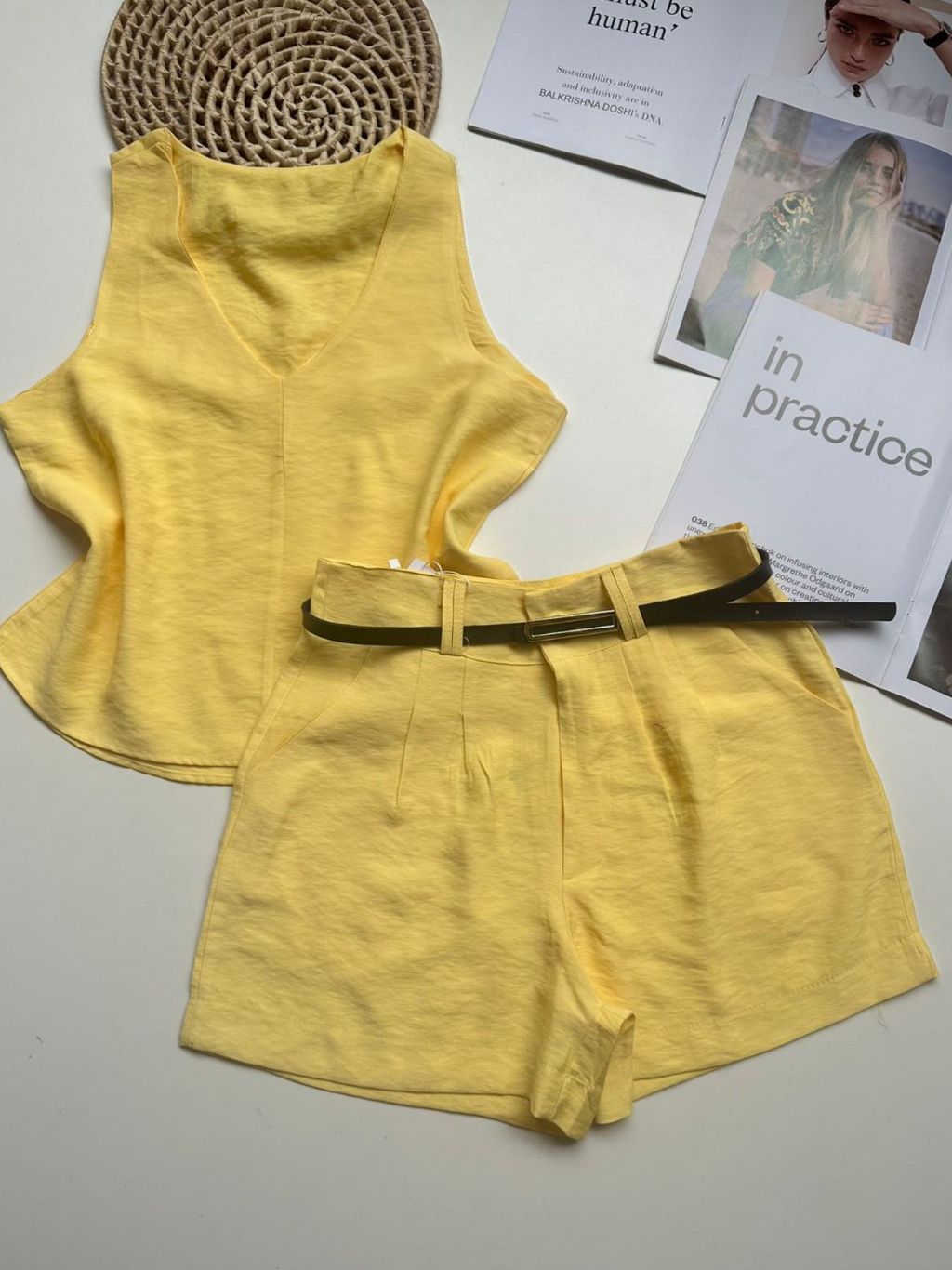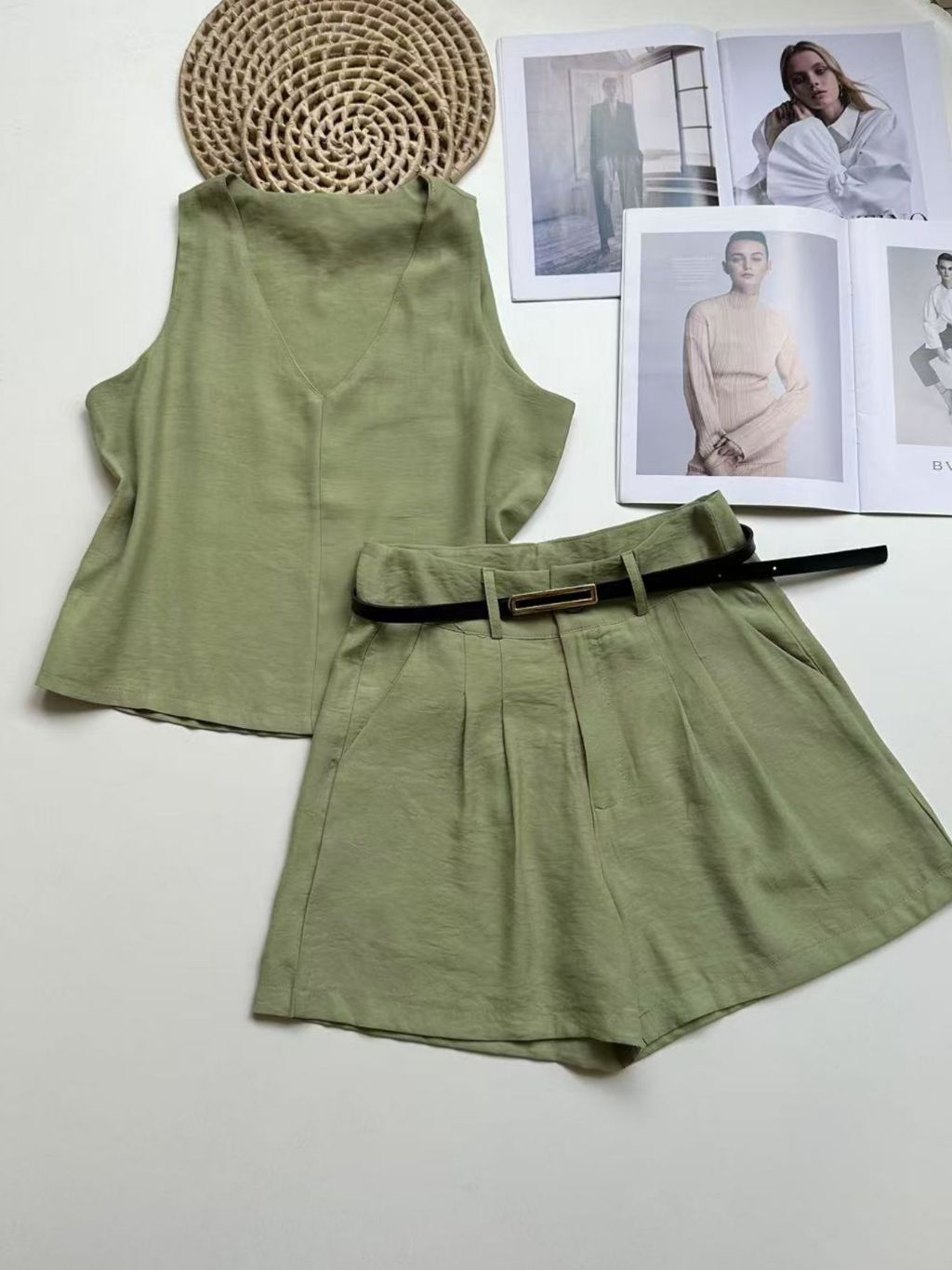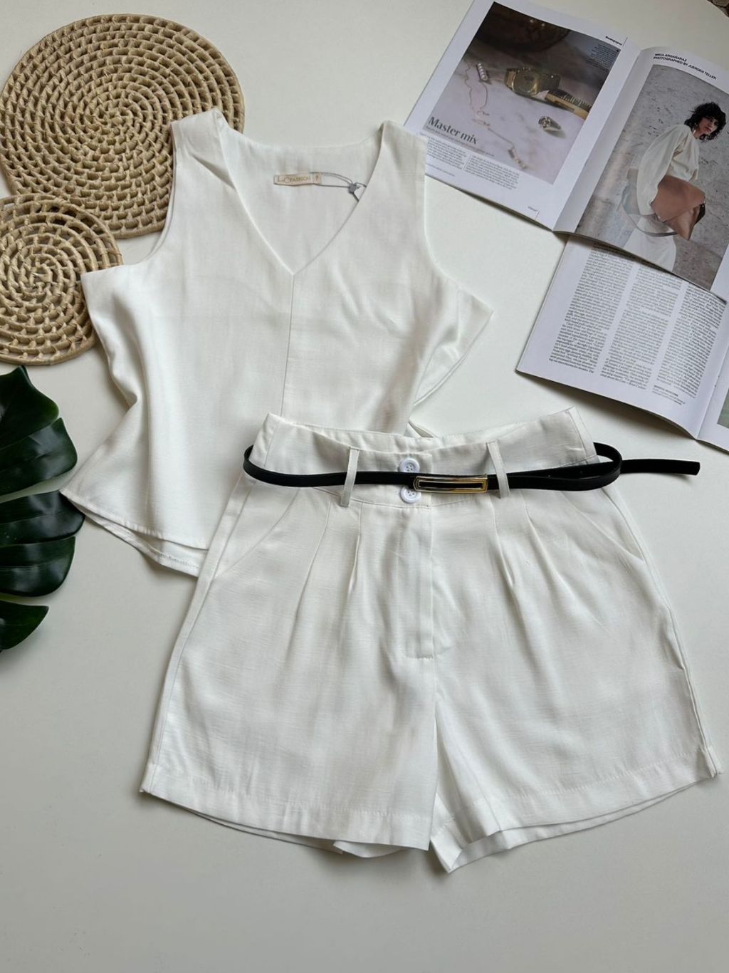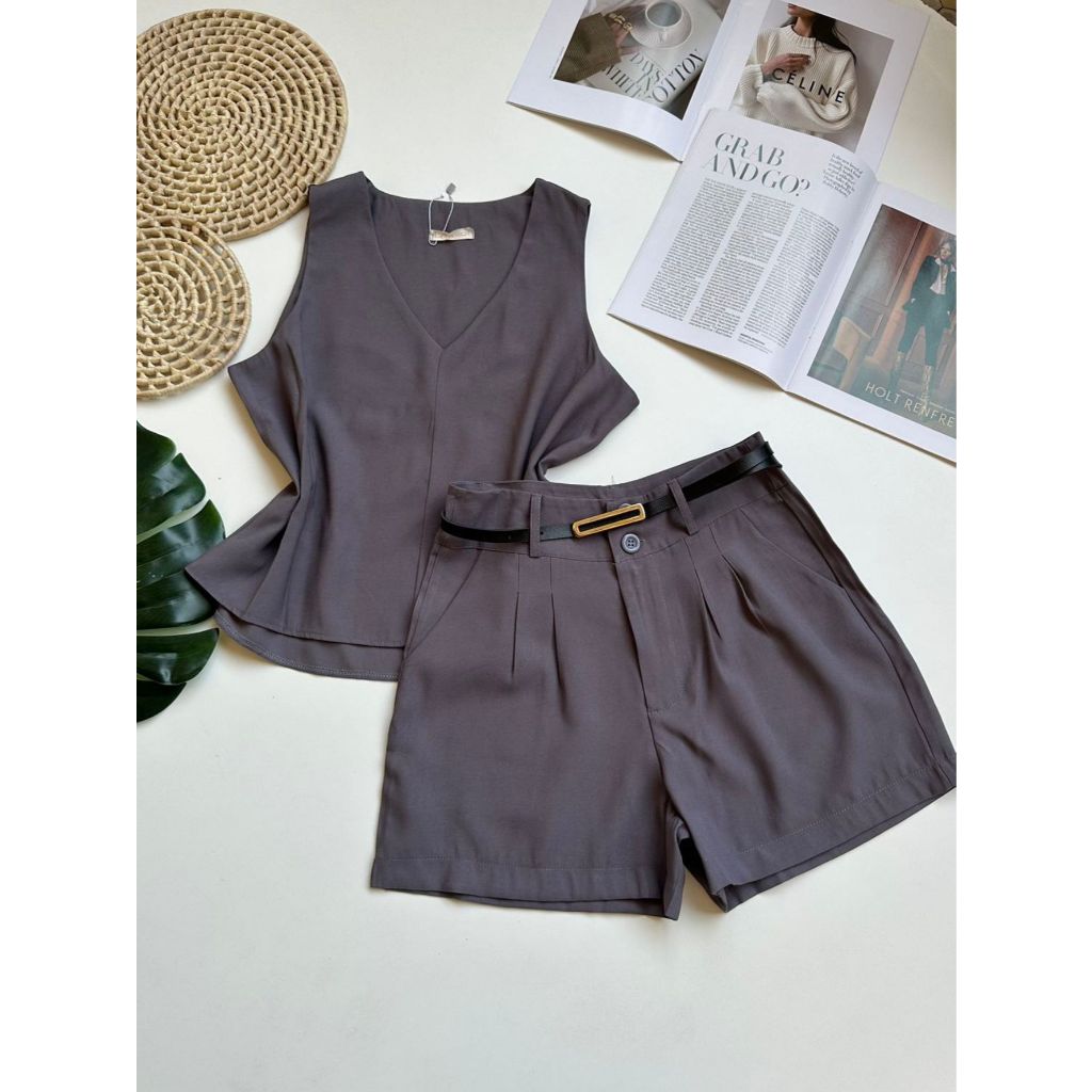 Conjunto marrant feminino de camiseta sem mangas e shorts com cinto