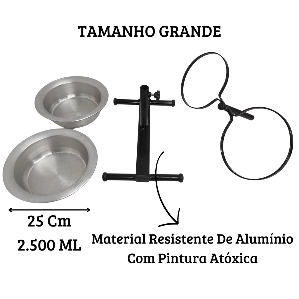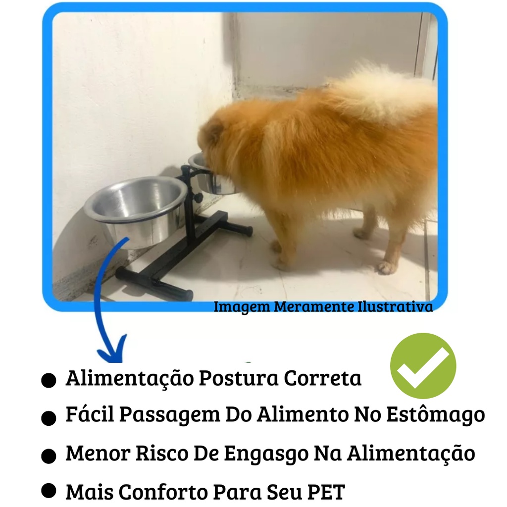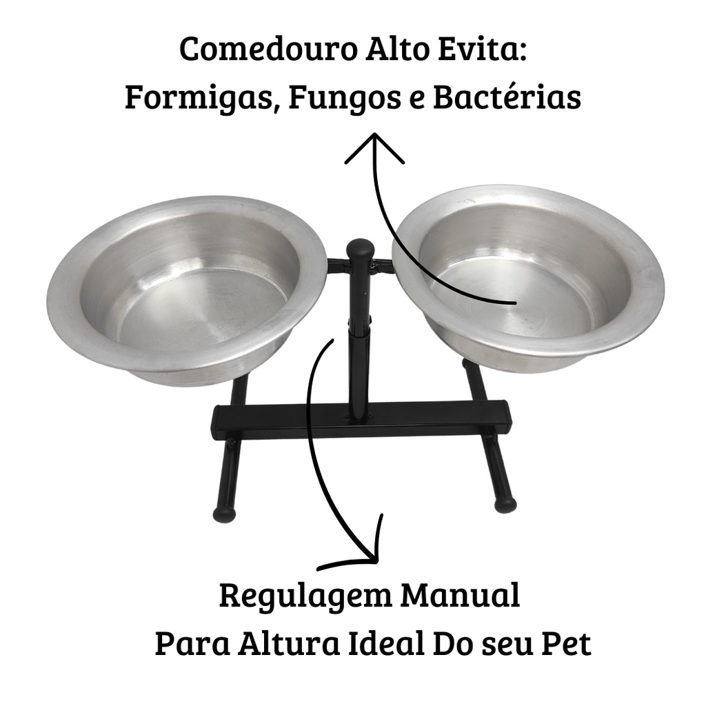 Comedouro Bebedouro Duplo Alumínio Ajustável Regulável Cachorro Elevado Postura