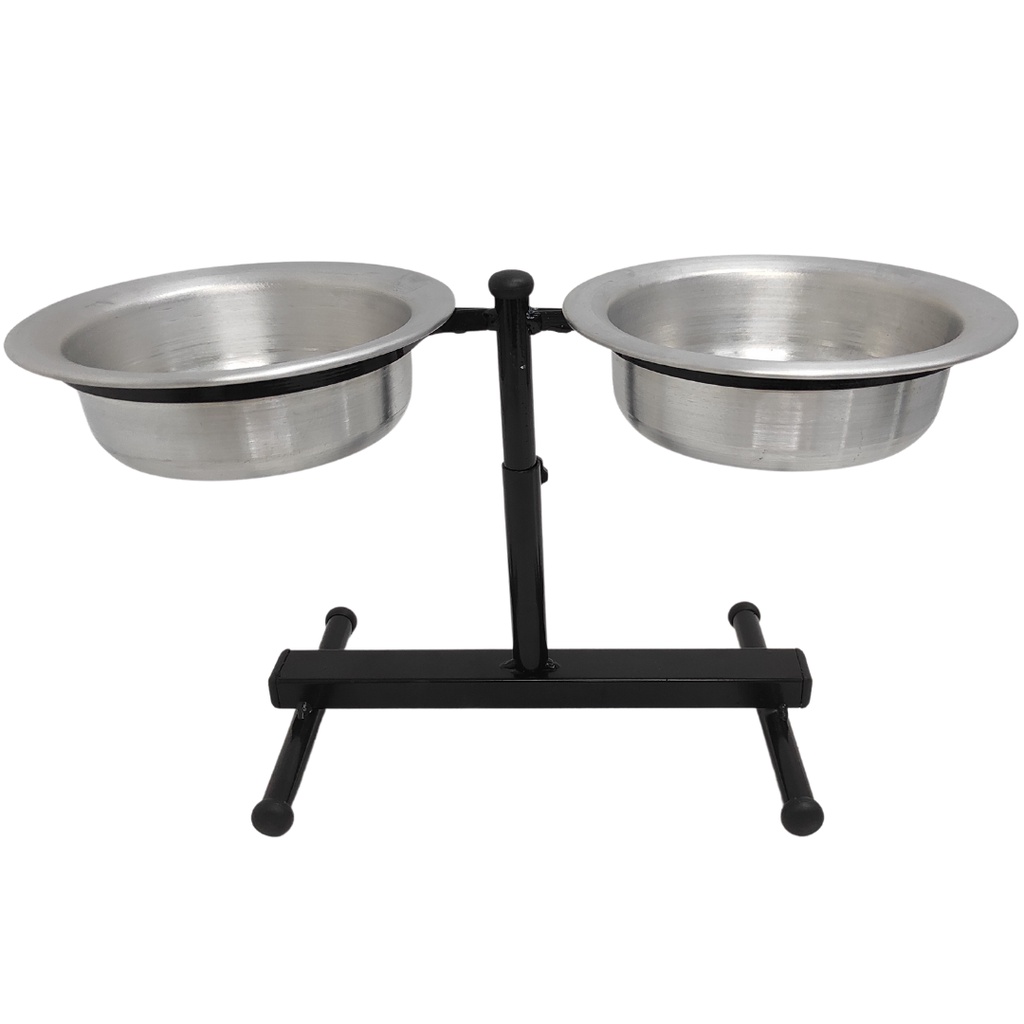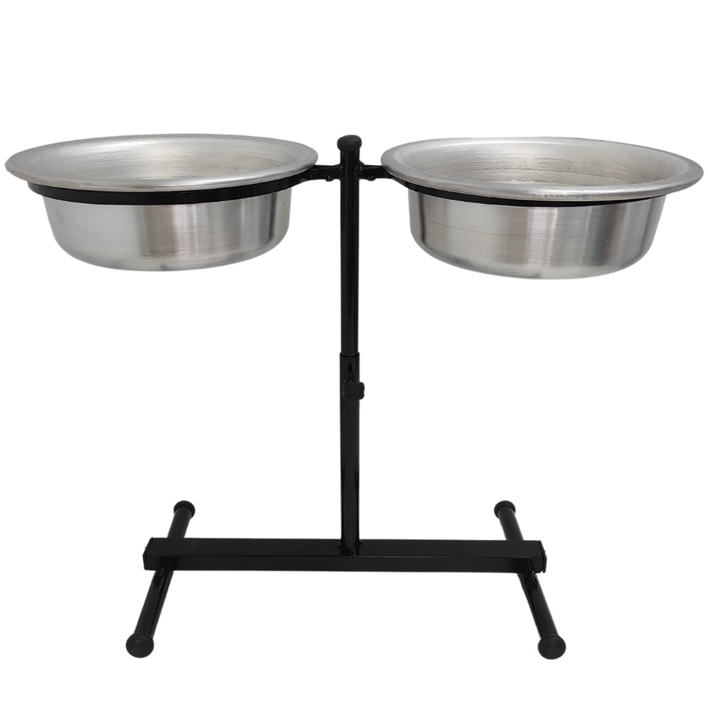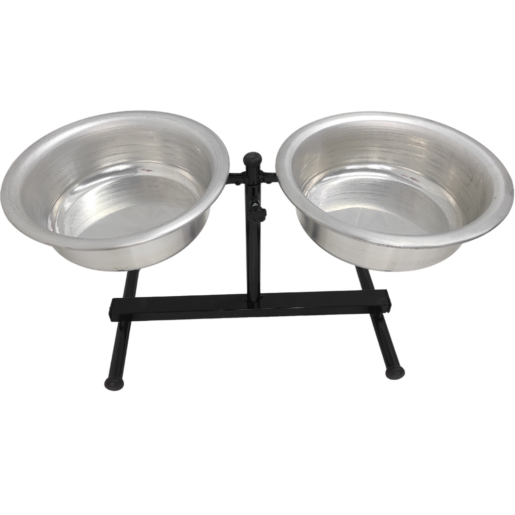 Comedouro Bebedouro Duplo Alumínio Ajustável Regulável Cachorro Elevado Postura