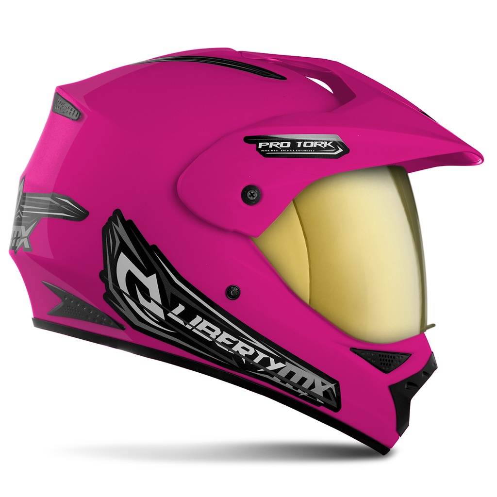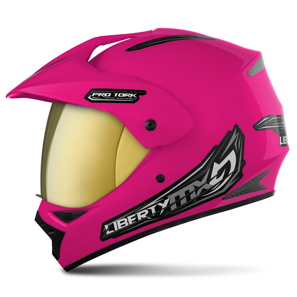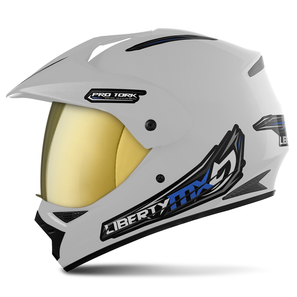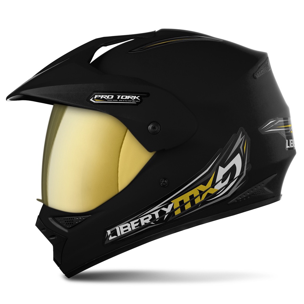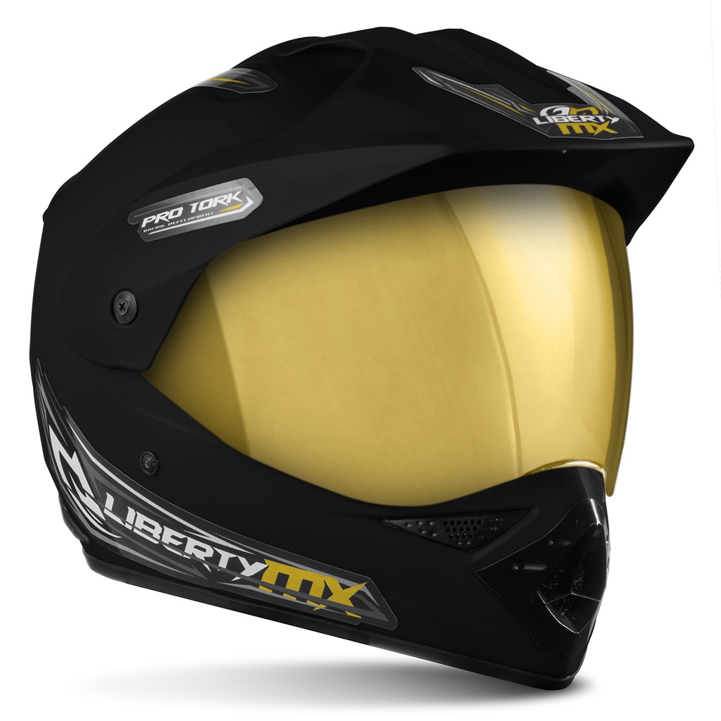 Capacete Fechado Motocross Trilha Trial Liberty MX Pro Vision Viseira Dourada Pro Tork