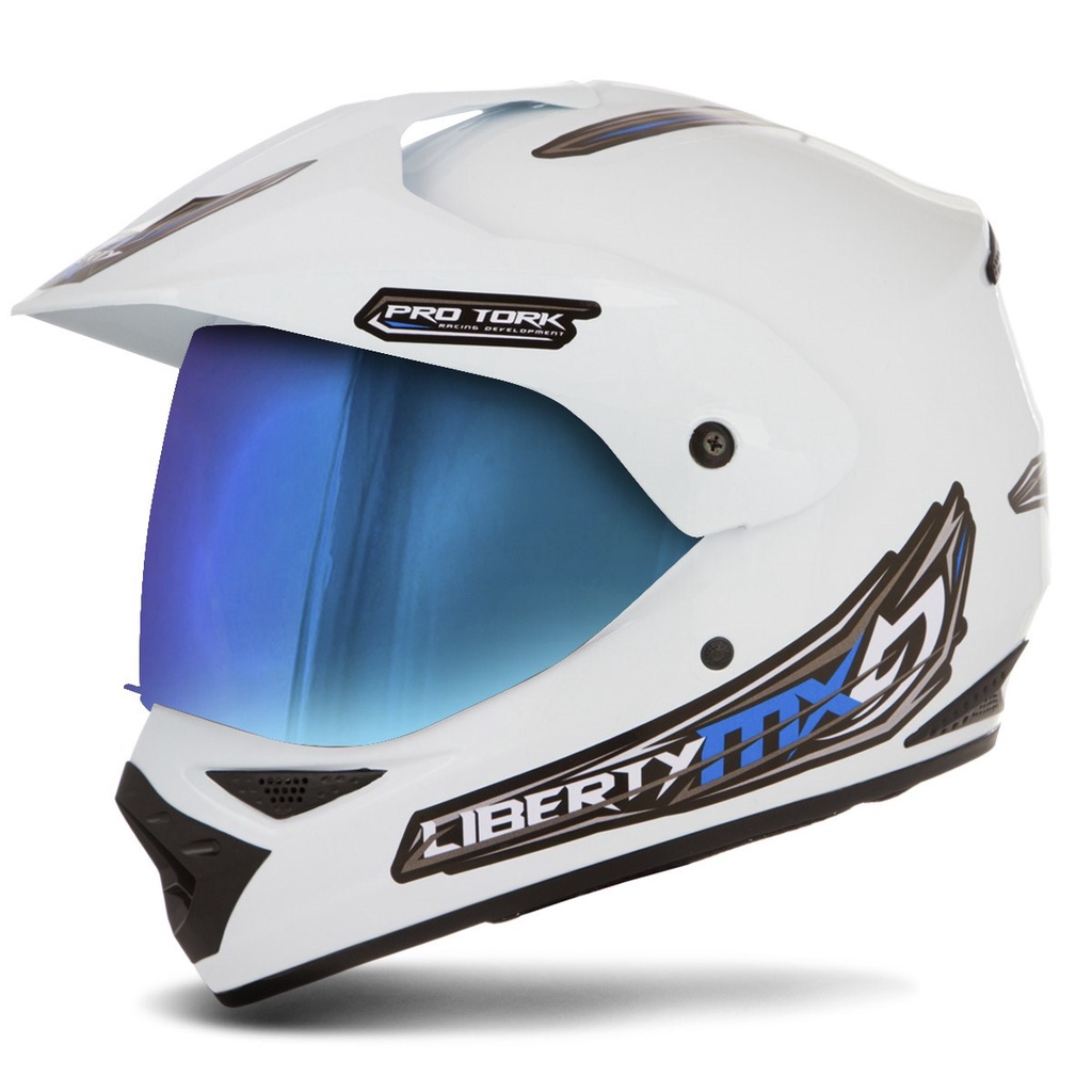 Capacete Motocross Trilha Trial Liberty MX Vision Fechado Viseira Camaleão Pro Tork