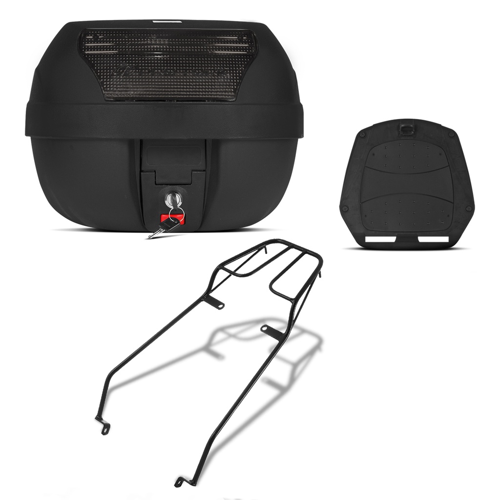 Baú Bauleto Motoboy Smartbox 2 28 Litros + Bagageiro Moto Suzuki YES 2005 a 2012 Pro Tork