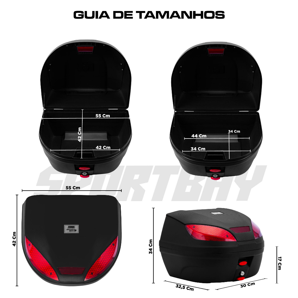 Bauleto 52 Litro Base Fixação Universal 2 Capacete Smartbox