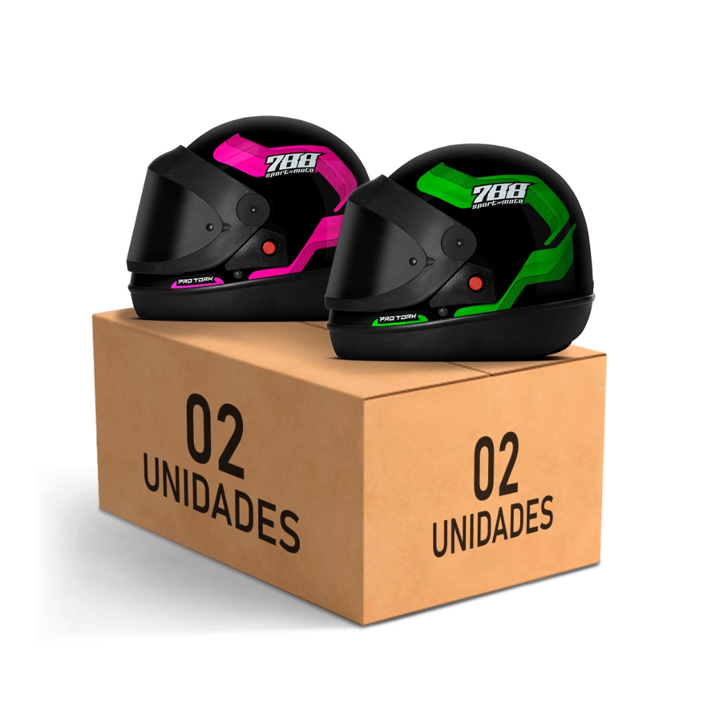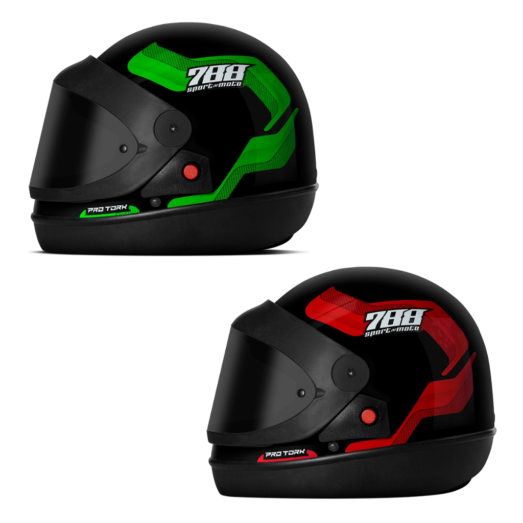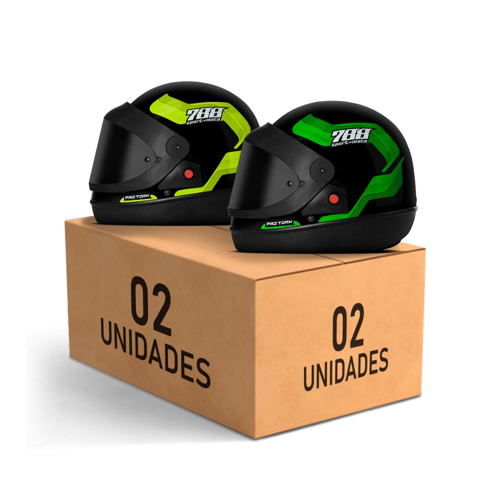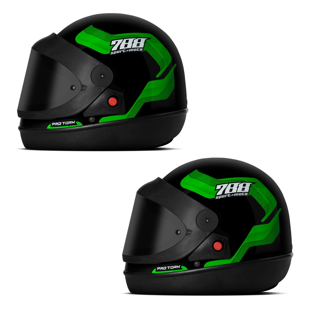 Kit Capacete Fechado Moto Masculino Feminino Pro Tork Sport Moto 788 Viseira Fumê Automático Verde