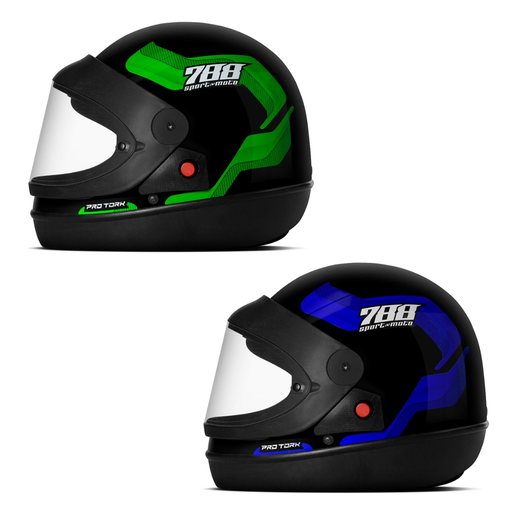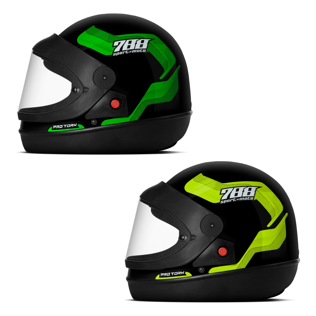 Kit Capacete Moto Masculino e Feminino Integral Pro Tork Sport Moto 788 Viseira Automática Verde