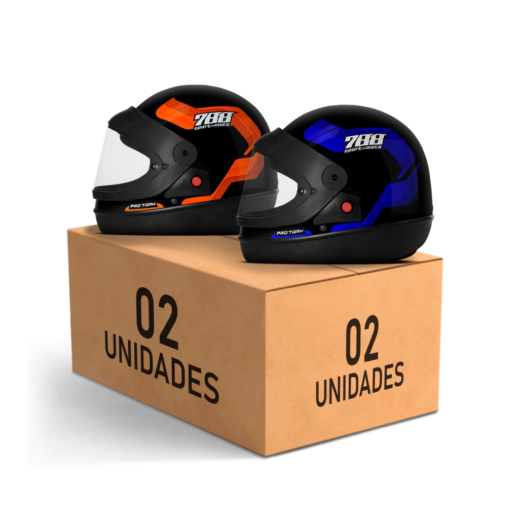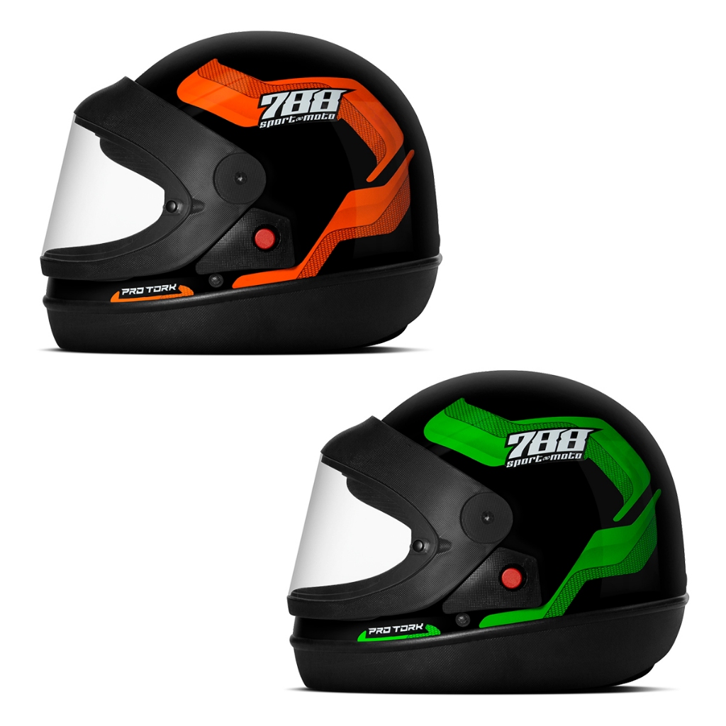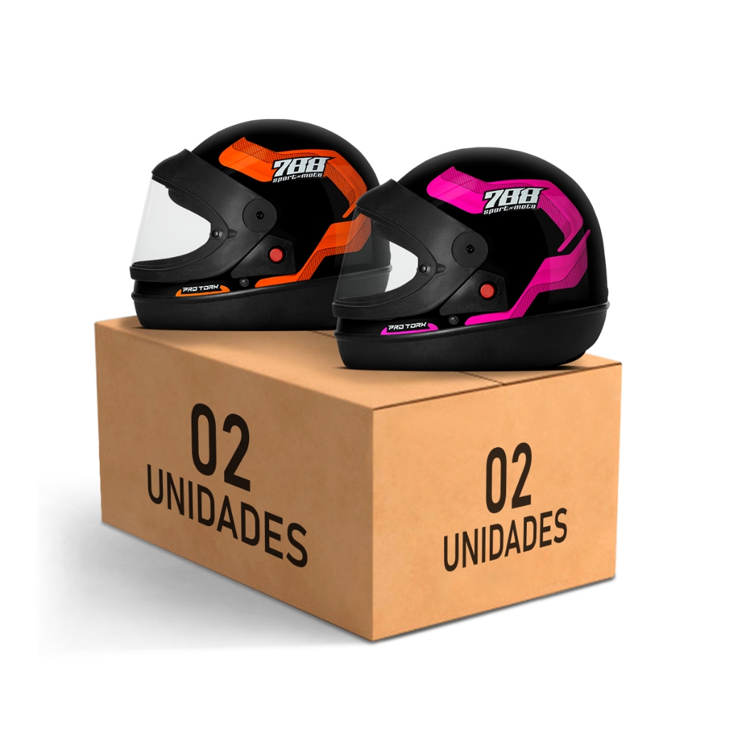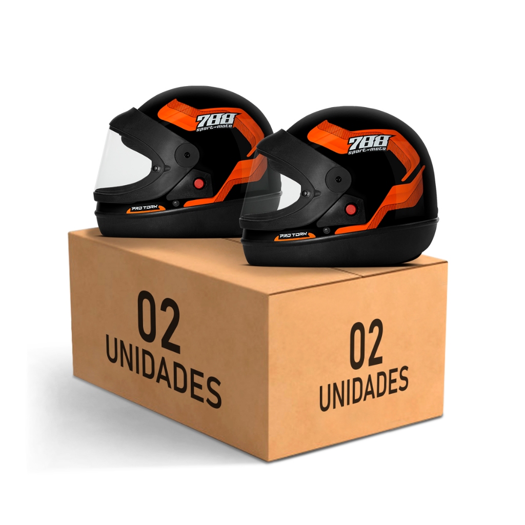 Kit Capacete Moto Masculino e Feminino Integral Pro Tork Sport Moto 788 Viseira Automática Laranja