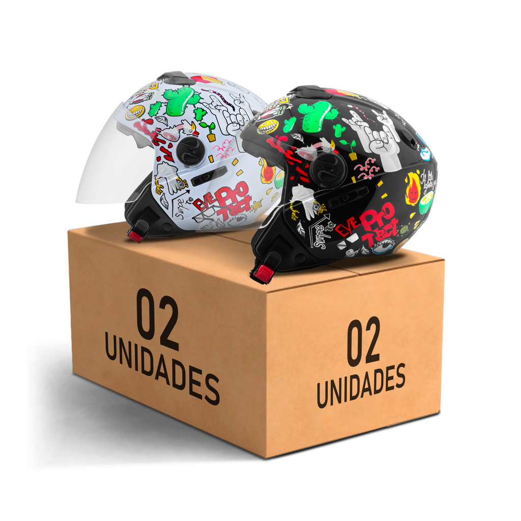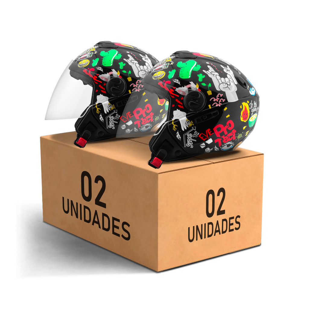 Kit Capacete Aberto Pro Tork New Atomic Universe Brilhante 2 Unidades
