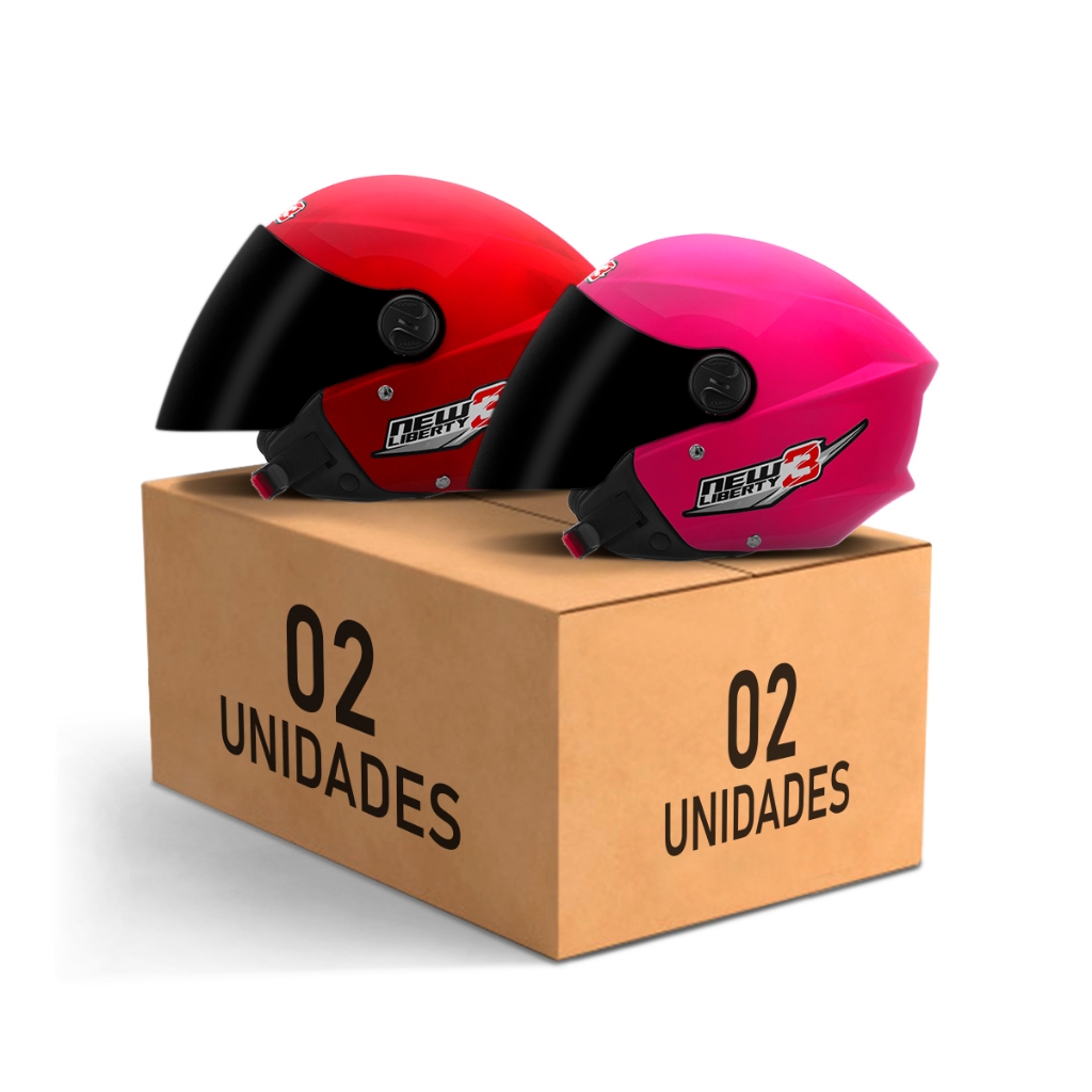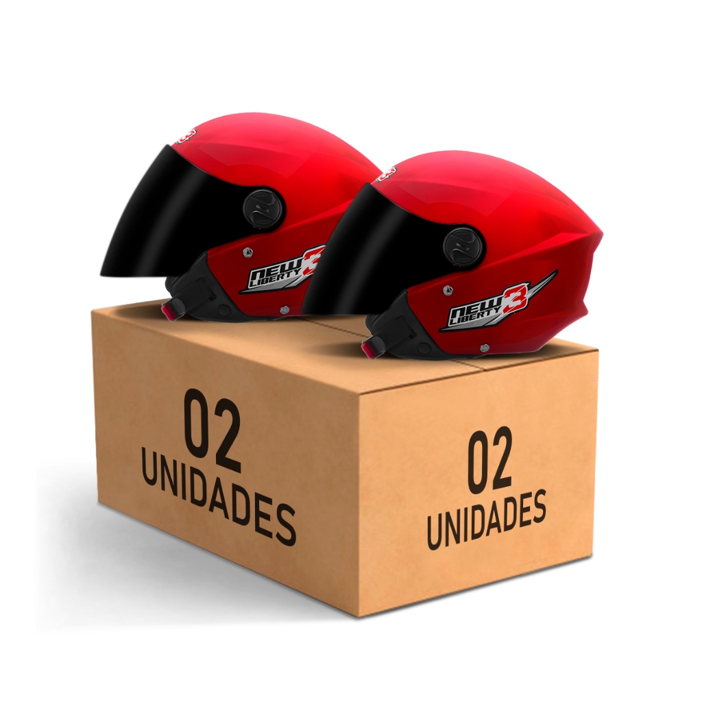 Kit Capacete Moto Aberto Masculino e Feminino Pro Tork New Liberty 3 Three Viseira Fumê Vermelho