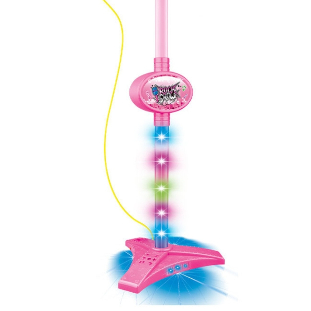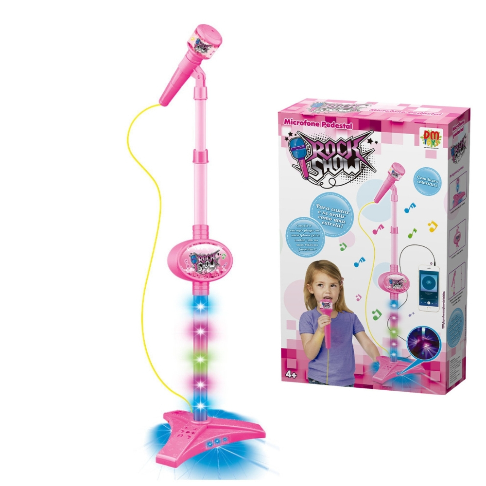 Microfone Infantil Brinquedo Pedestal com Luz Conecta MP3 Celular DM Toys Azul / Rosa