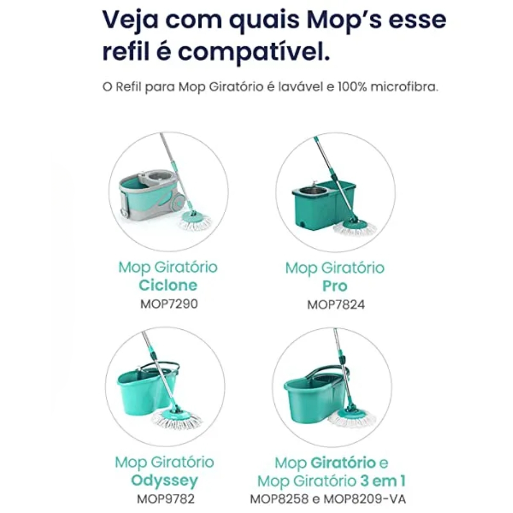 Refil Microfibra 16cm para Mop Giratório Esfregão Pró 3 em 1 360 Flash Limp RMOP8210