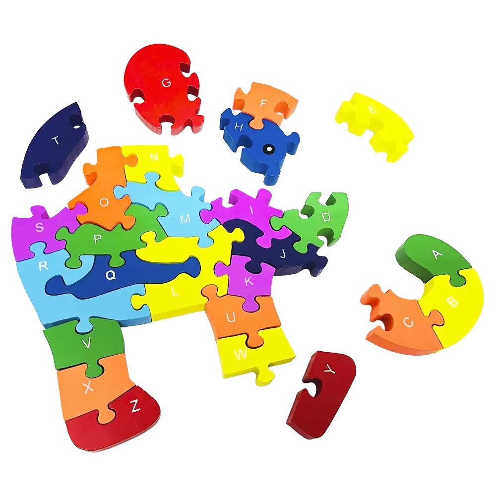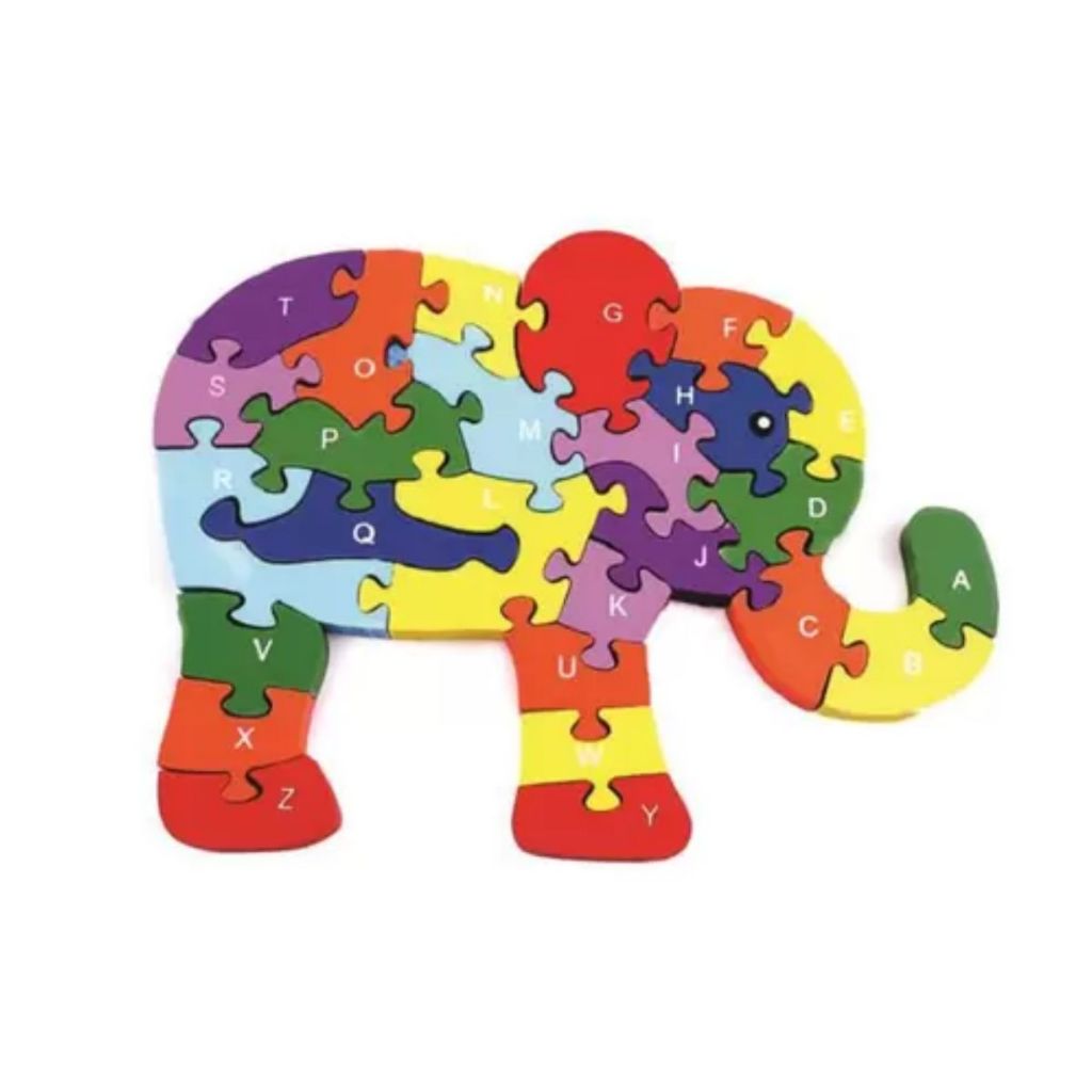 Quebra-cabeça Madeira Infantil Educativo Montessori Animal Elefante Com 26 Peças do Alfabeto