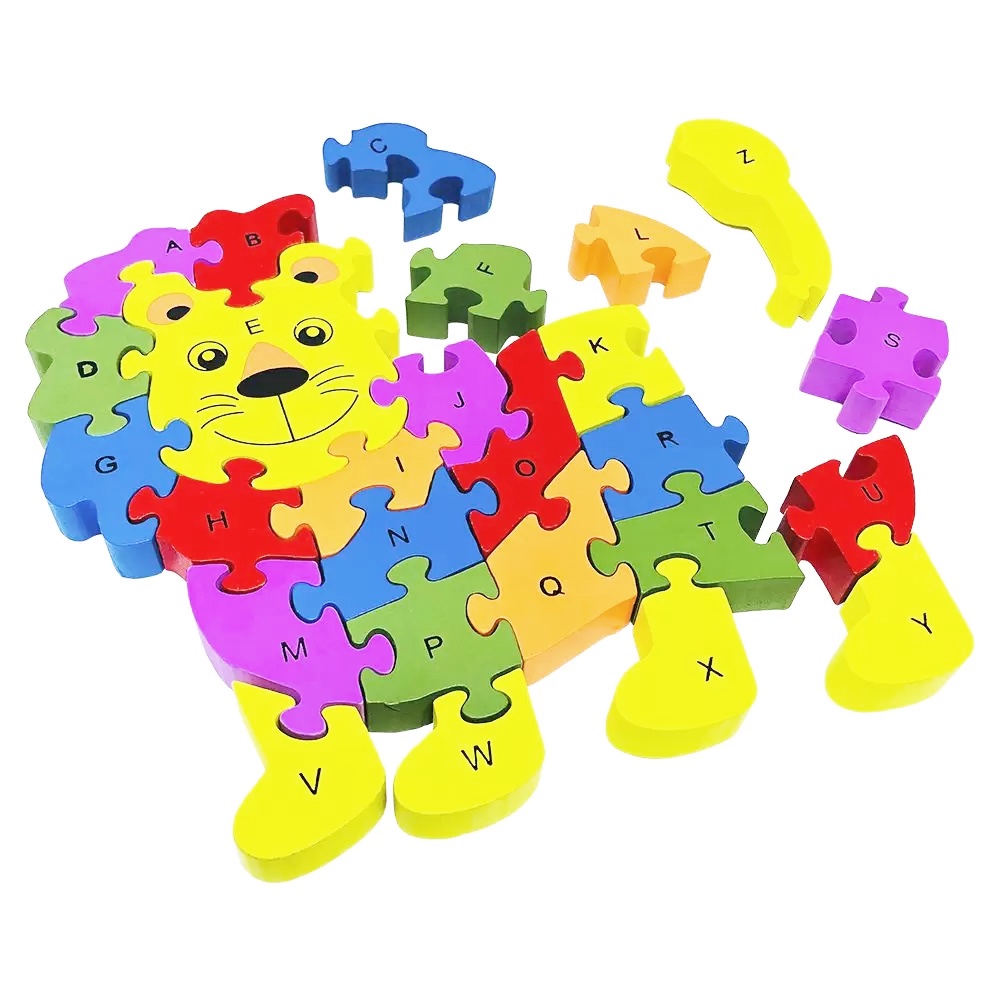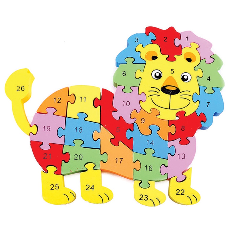 Quebra-cabeça Madeira Infantil Educativo Montessori Animais C/ 26 Peças Numeradas Brinquedo Didático