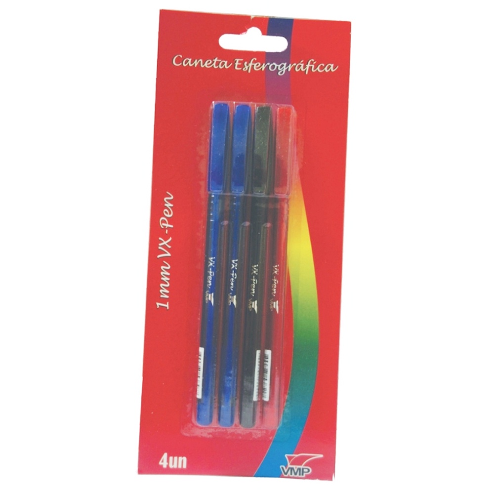 Caneta Esferográfica 1mm Blister Com 4 Unidades VX-PEN VMP