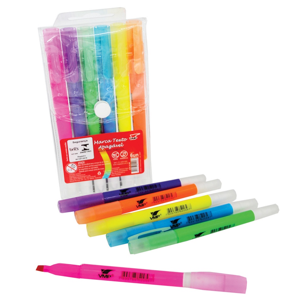 Kit 6 Marca Texto Apagável 6 Cores Papelaria Material Escolar Marcador Neon Volta as Aulas Neon
