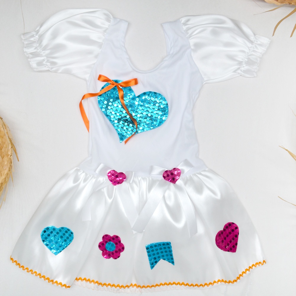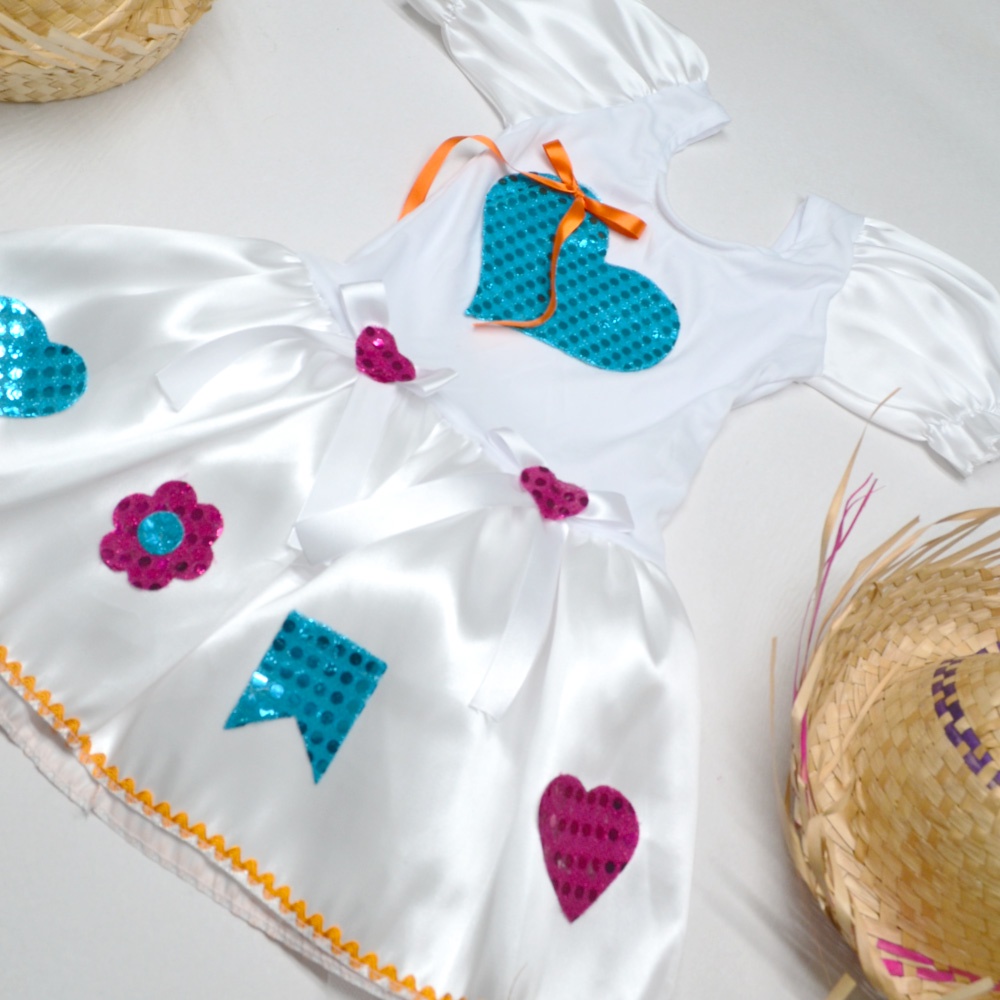 Vestido Festa Junina Noivinha Caipira Com Véu Tamanho P M Infantil 4-6 Anos São João Arraiá Vestido