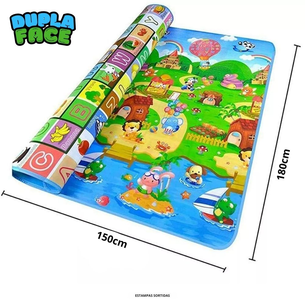 Tapete Infantil Dupla face 2 Metros Baby Impermeável Tapetinho de Criança Bebe Atividade Brinquedo