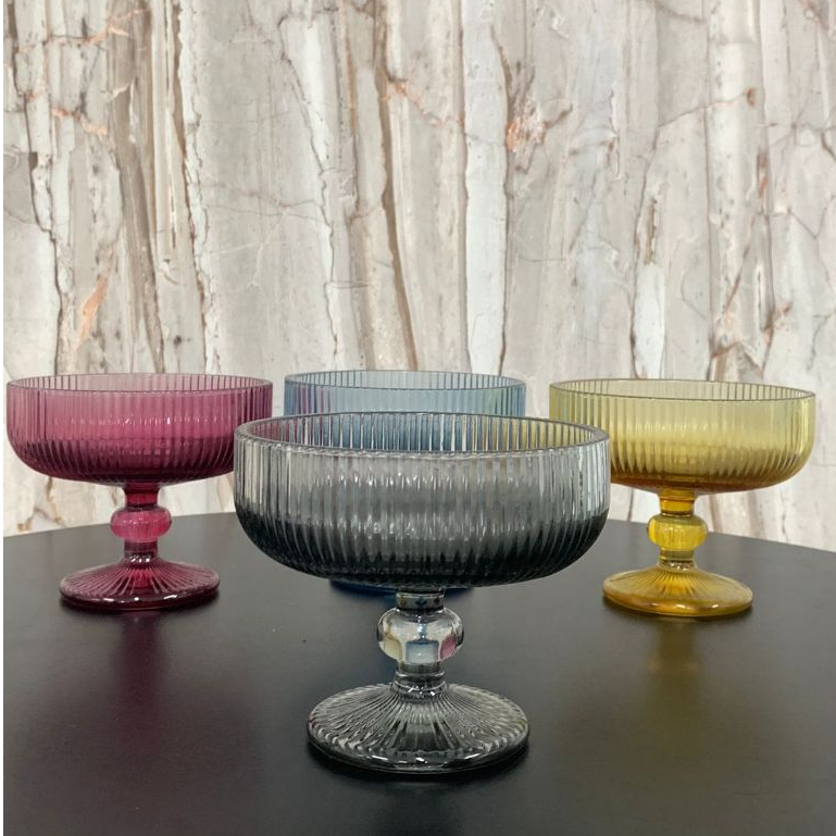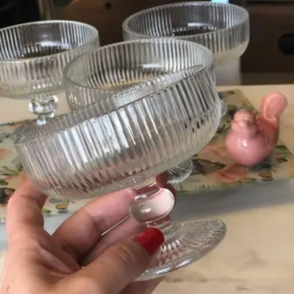 Conjunto Taça de Sobremesa Canelada 320ml Taça de Sobremesa de Vidro Enxoval Casa Cozinha