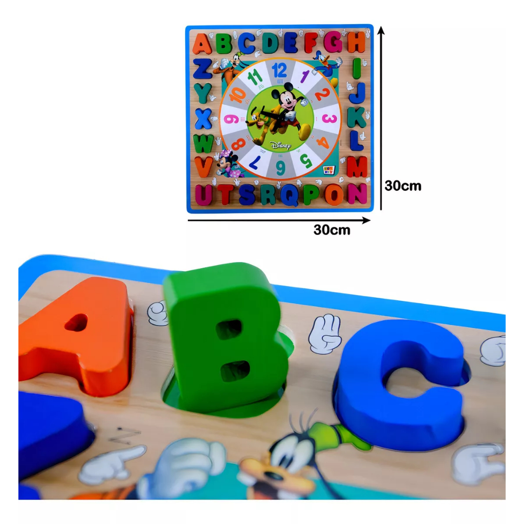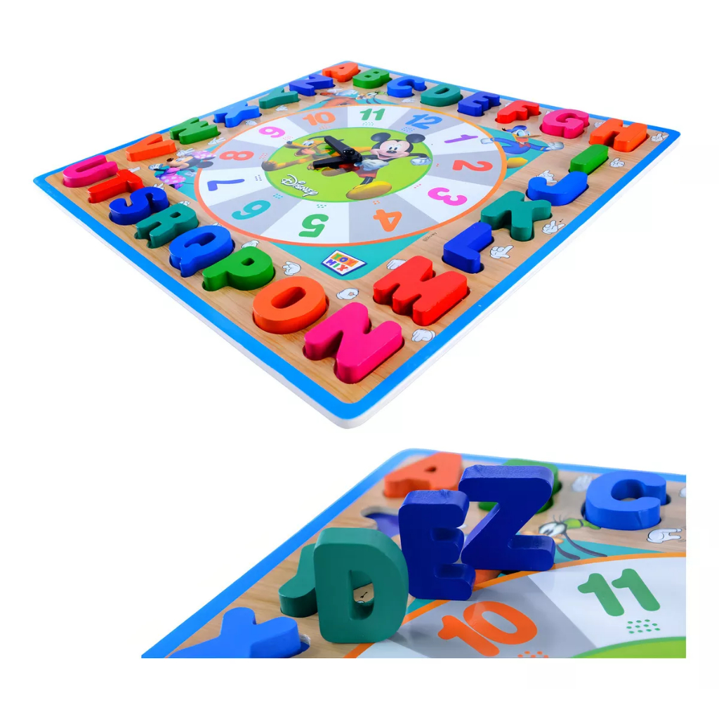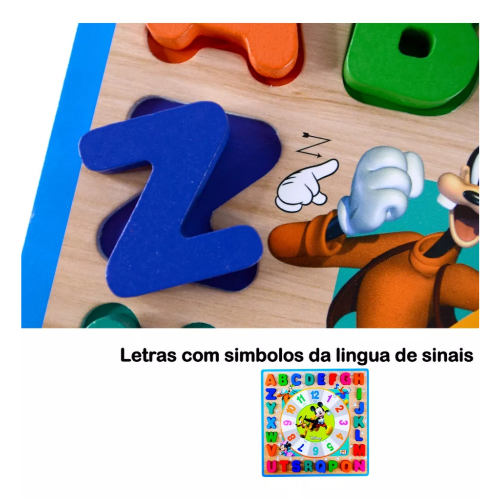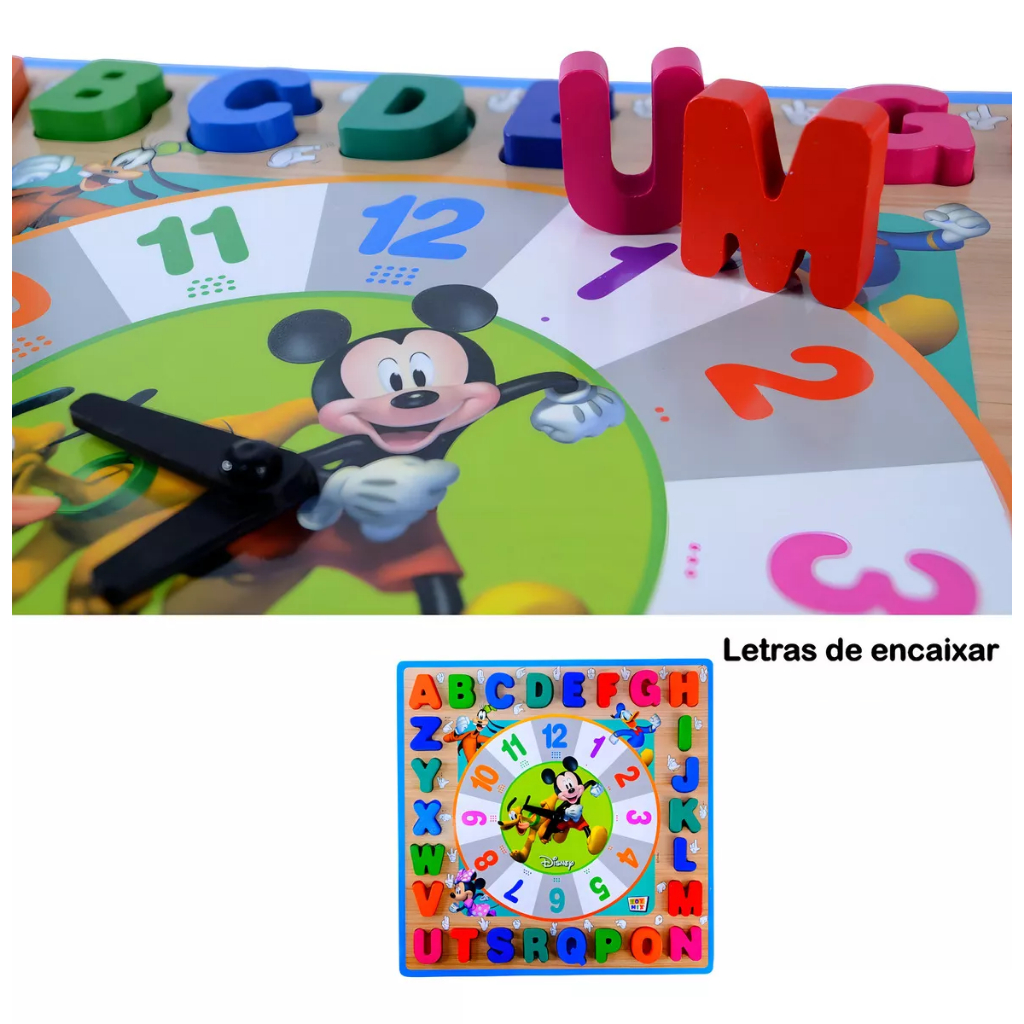Brinquedo Educativo Pedagogico Relogio Divertido Mickey Encaixe Alfanumérico Libras