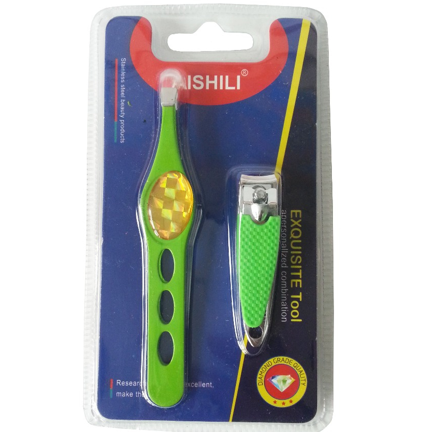 Conjunto 2 Peças Pinça e Cortador de Unha Cuidado Pessoal Masculino Pinça para Sobrancelha Premium