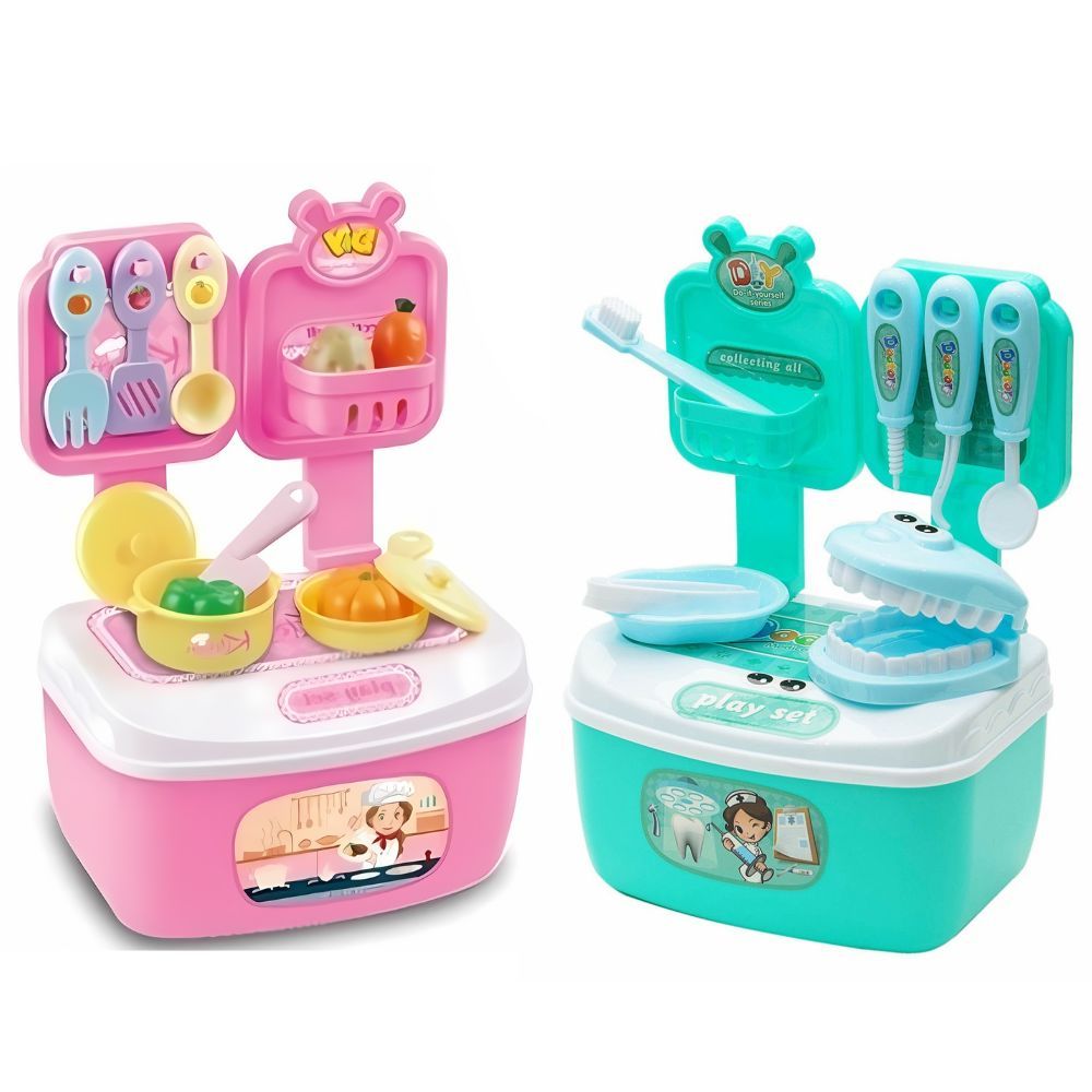 Cesta Maleta de Brinquedo Acessório Dentista Kit Cozinha Panelas Cozinheiro Médico Presente Criança