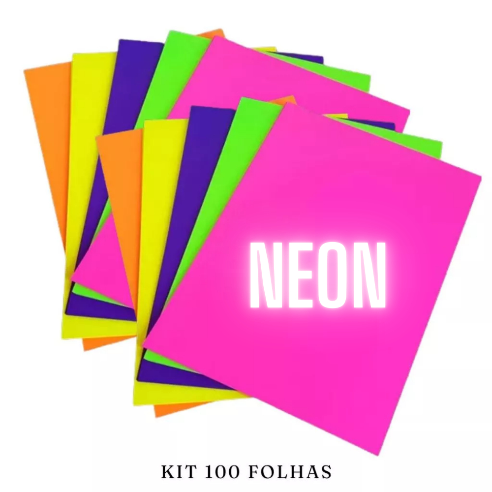 Folhas Papel Neon Criativo A4 80g Papel Fluorescente Material Escolar Volta as Aulas Papelaria