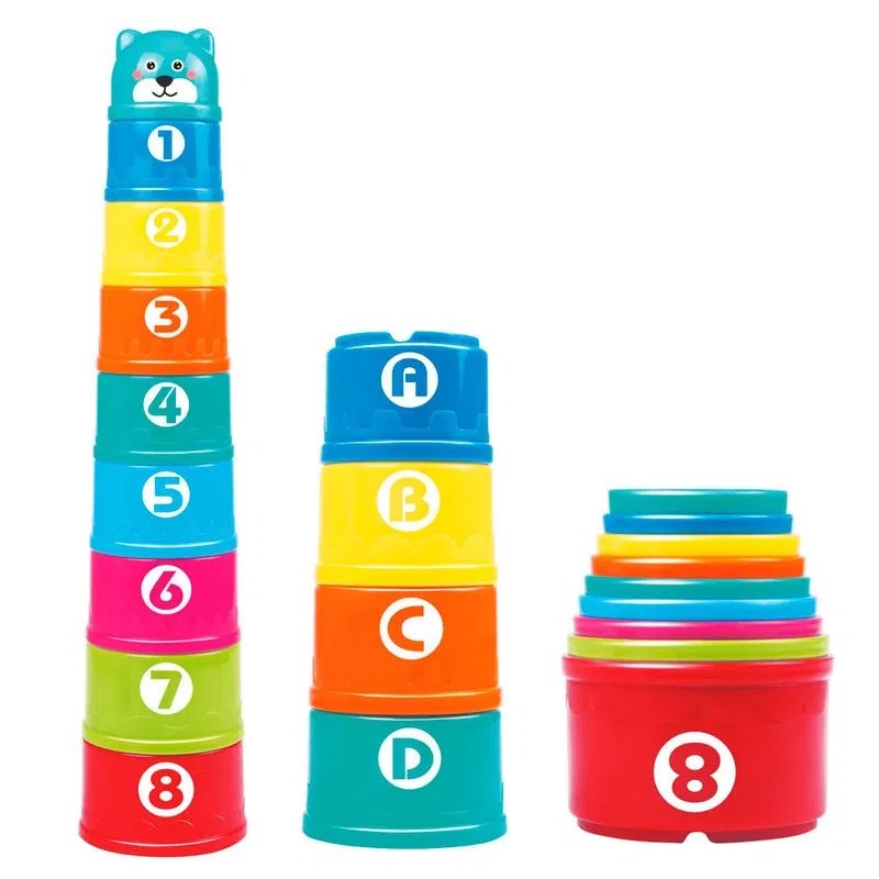 Torre Divertida 9 Potes Educação Infantil Montessori Brinquedos Bebê Raciocínio Força Equilíbrio