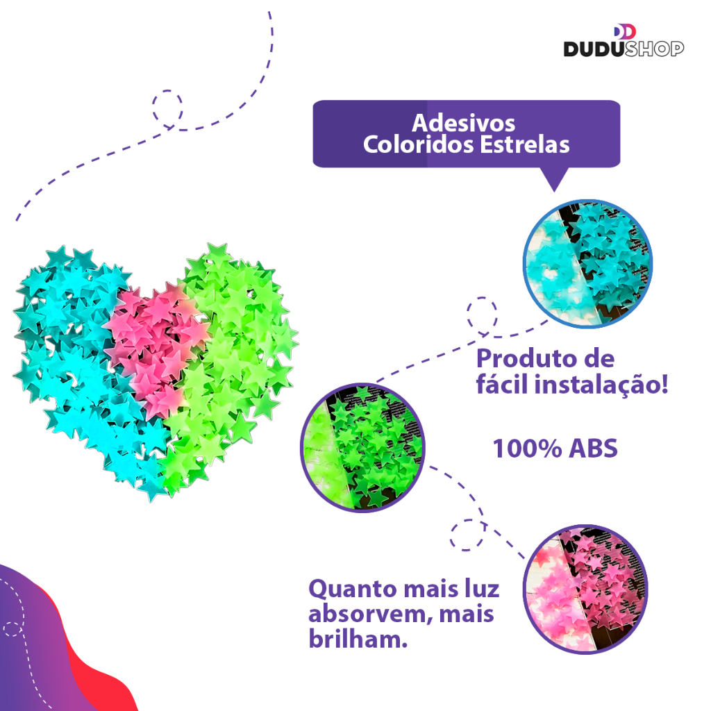 Adesivos Coloridos Estrelas De Plástico Que Brilham No Escuro Para Decoração Da Casa