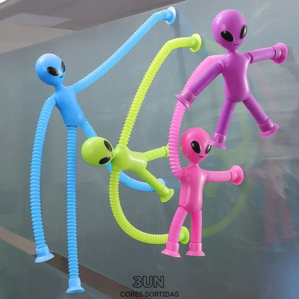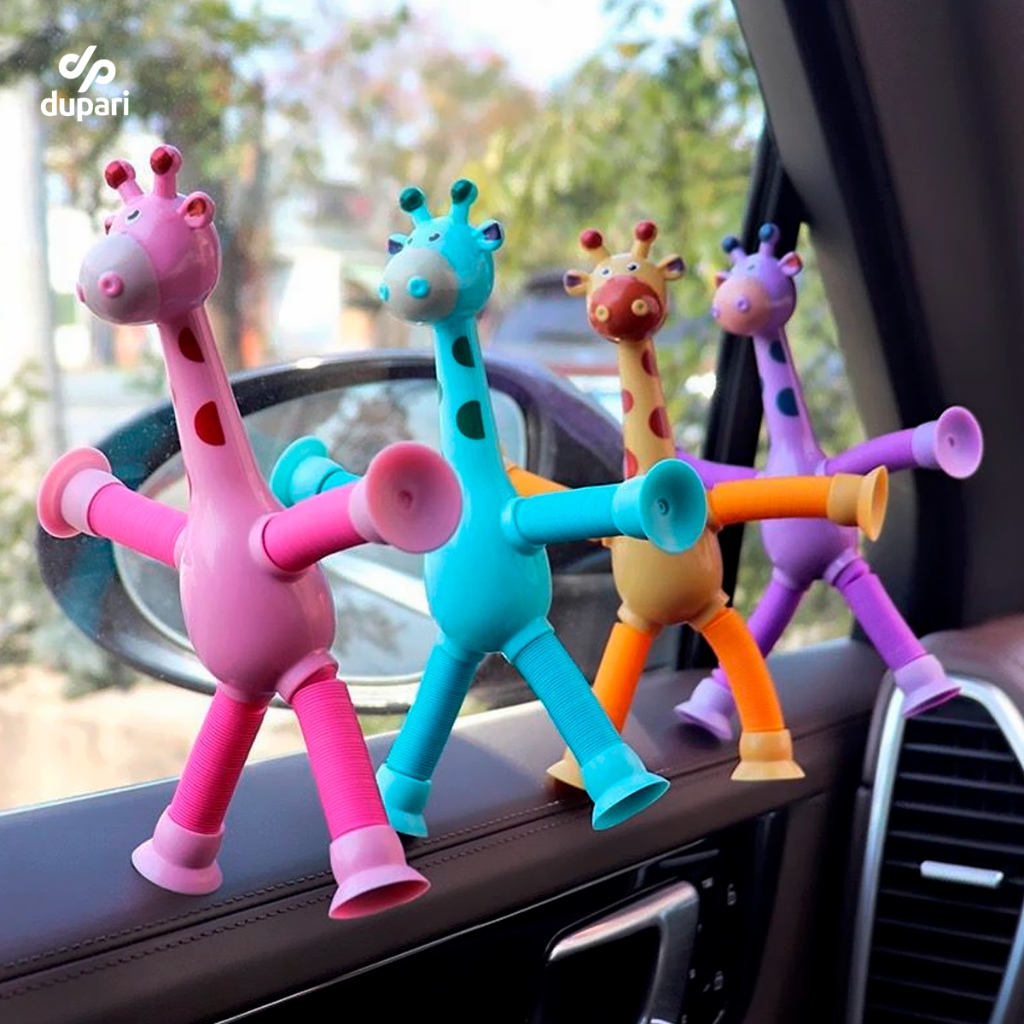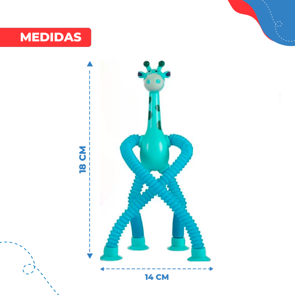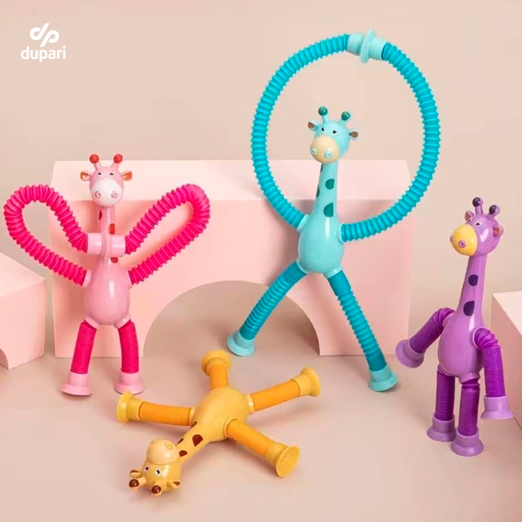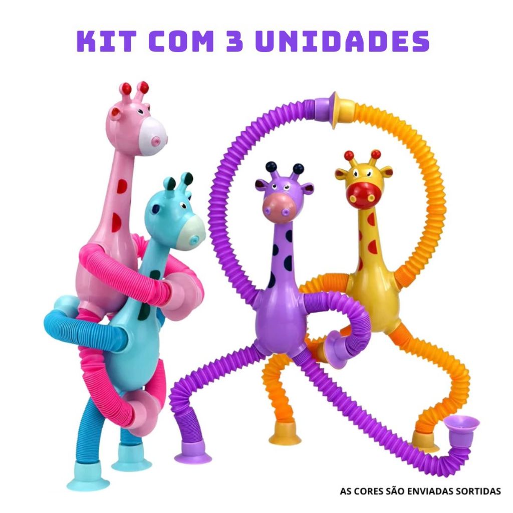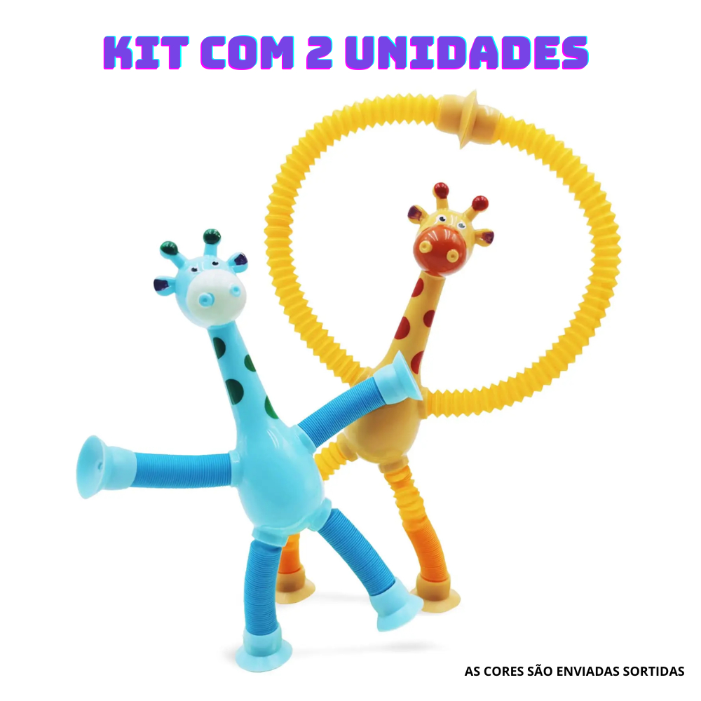 Girafa Pop Tubo Led Com Ventosa E Luz Brinquedo De Criança Puxa Estica Até 40cm